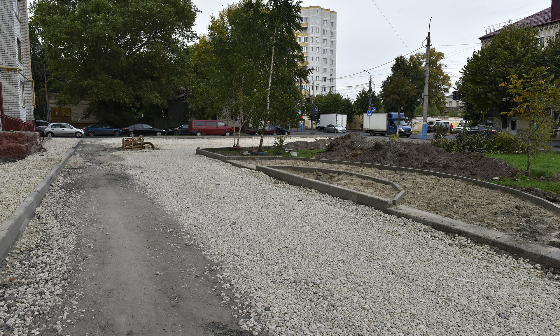 Первый адрес — улица Луначарского, 10. Здесь идет ремонт двора по программе «Формирование комфортной городской среды». Стоимость работ — 4,4 млн рублей, из этой суммы пять процентов внесли сами жители. Напомним, жители вносят собственные средства в том случае, если хотят благоустроить двор комплексно, то есть не только заасфальтировать проезды, установить скамейки, урны, отремонтировать освещение, но и провести дополнительные работы. Жильцы дома по Луначарского на общем собрании решили, что в качестве дополнения в их дворе необходимо обустроить парковочные места, установить детскую игровую площадку и спилить старые деревья. Сейчас подрядчик делает новую парковку и занимается ремонтом тротуаров. Работы должны завершиться 19 октября.
