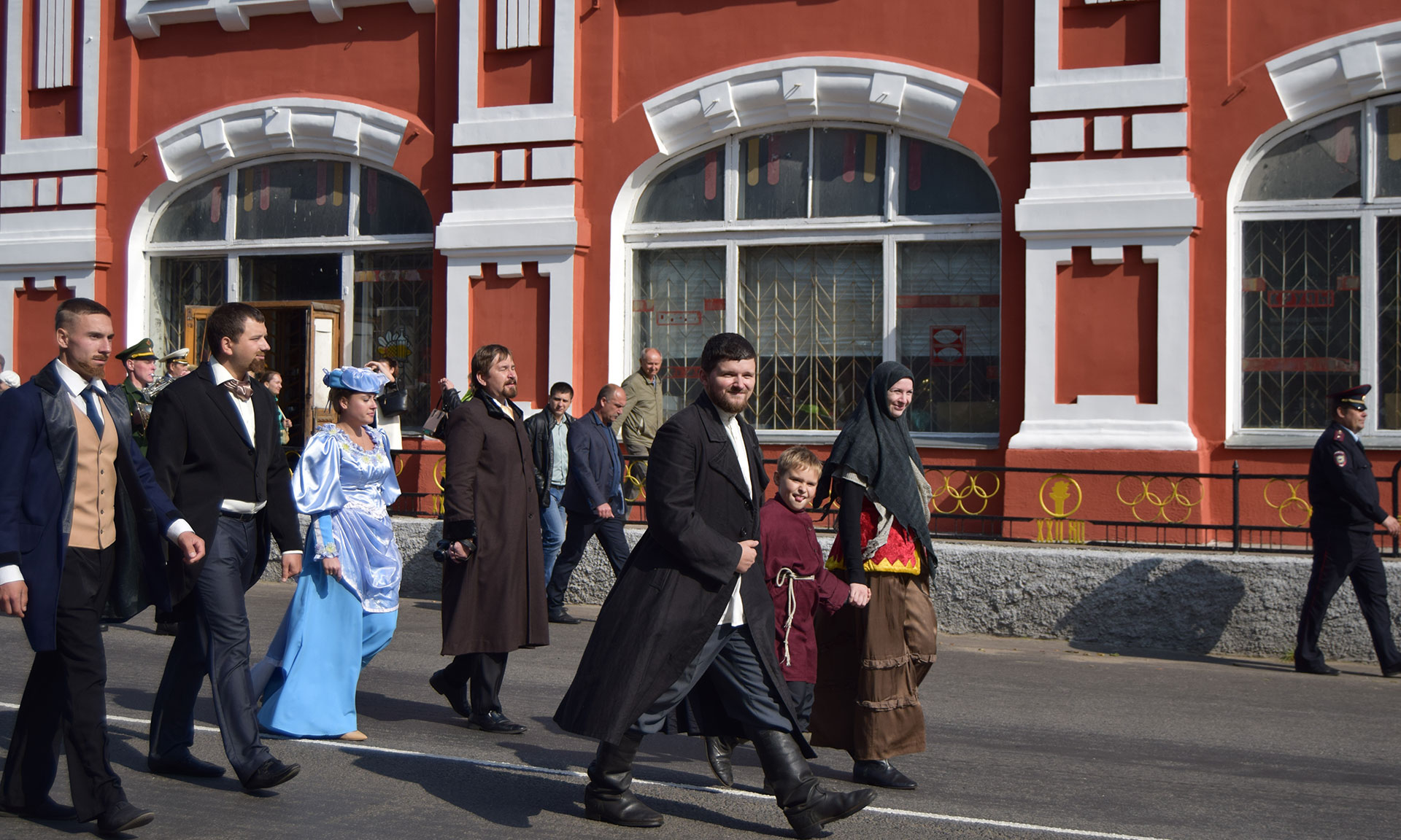 Шествие к памятнику героям Отечества по Октябрьской улице открыли байкеры. Возглавил колонну глава города Олег Шкуратов, прикрепивший к своему мотоциклу флаг города Клинцы, который позже был установлен у памятника Героям Отечества. За байкерами на главную улицу города вышла праздничная колона клинчан. Во время шествия была сделана остановка у памятника основателям города, где высокие гости, руководство города возложили цветы.