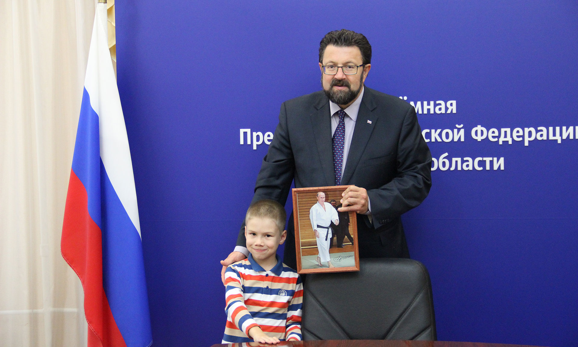 В Приемной Президента Российской Федерации Владимира Путина в Брянской области состоялась встреча федерального инспектора по Брянской области Михаила Калашникова с юным брянцем Захаром Скрипченко и его отцом Вадимом. Также во встрече приняли участие исполняющий обязанности председателя комитета по физической культуре и спорту Брянской городской администрации Андрей Цыганков и начальник отдела культуры, молодежной политики и спорта Советской районной администрации города Брянска Александр Лепешкин.