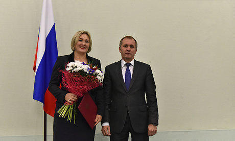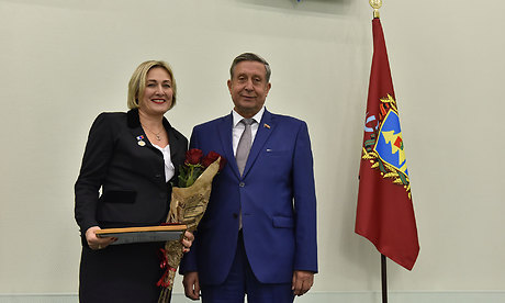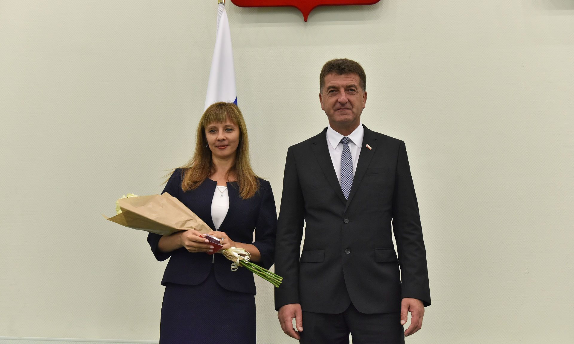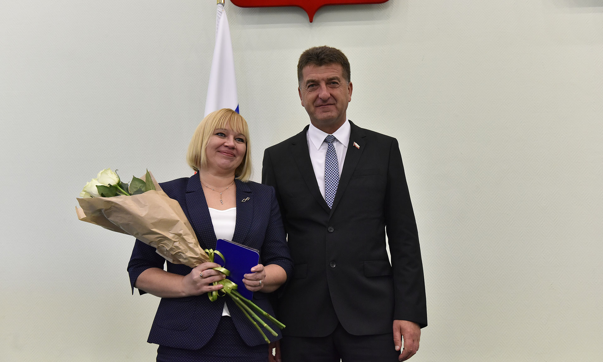 Александр Резунов вручил благодарственное письмо Губернатора Брянской области за многолетний добросовестный труд и профессионализм с пожеланиями крепкого здоровья, успехов в работе, оптимизма и благополучия Галине Финашиной, аудитору Контрольно-счетной палаты города Брянска.