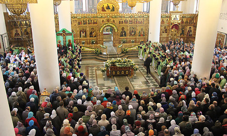 По окончании литургии был совершен праздничный крестный ход со святыми мощами преподобного Олега Брянского. Епископ Вениамин вознес молитву небесному заступнику Брянского края.