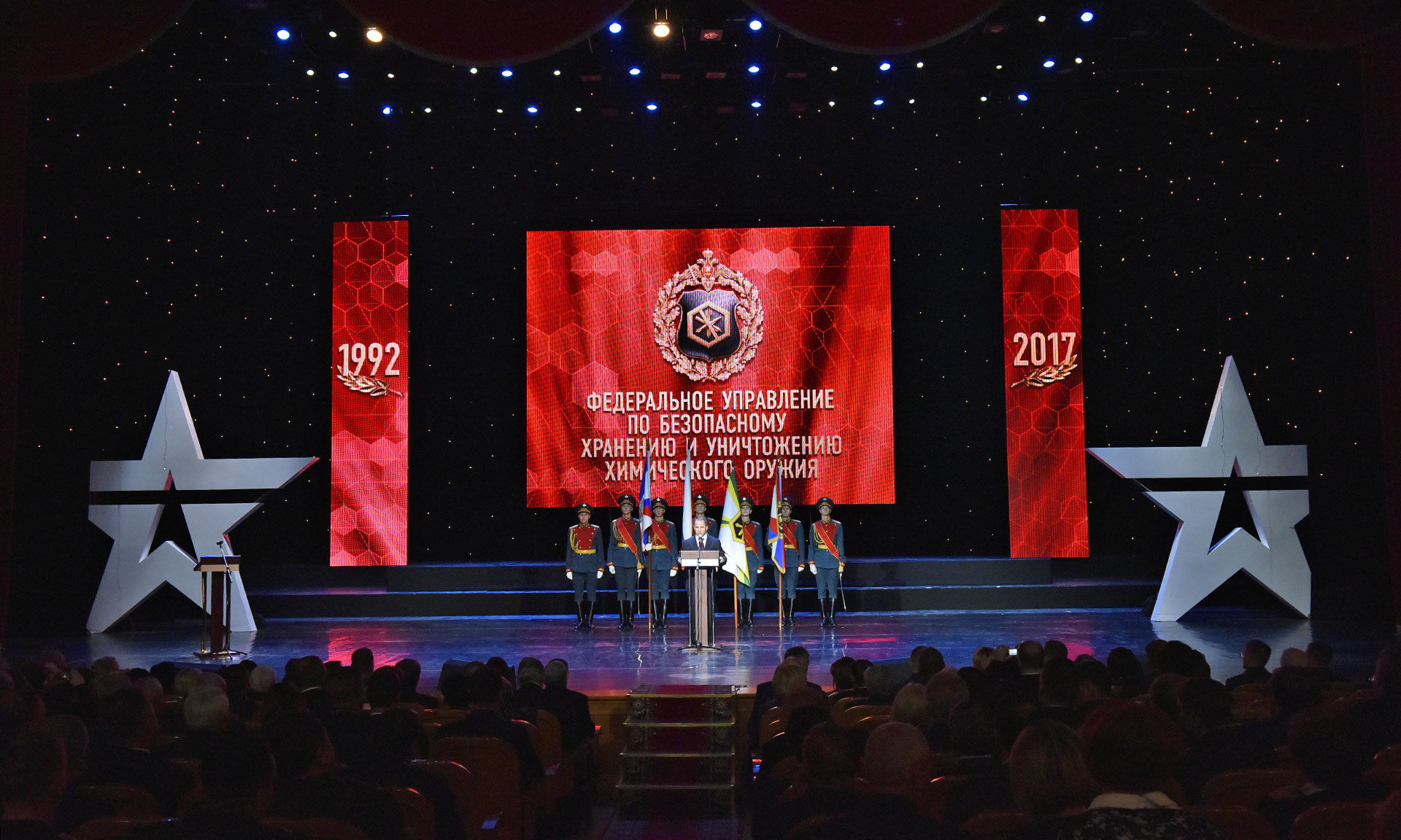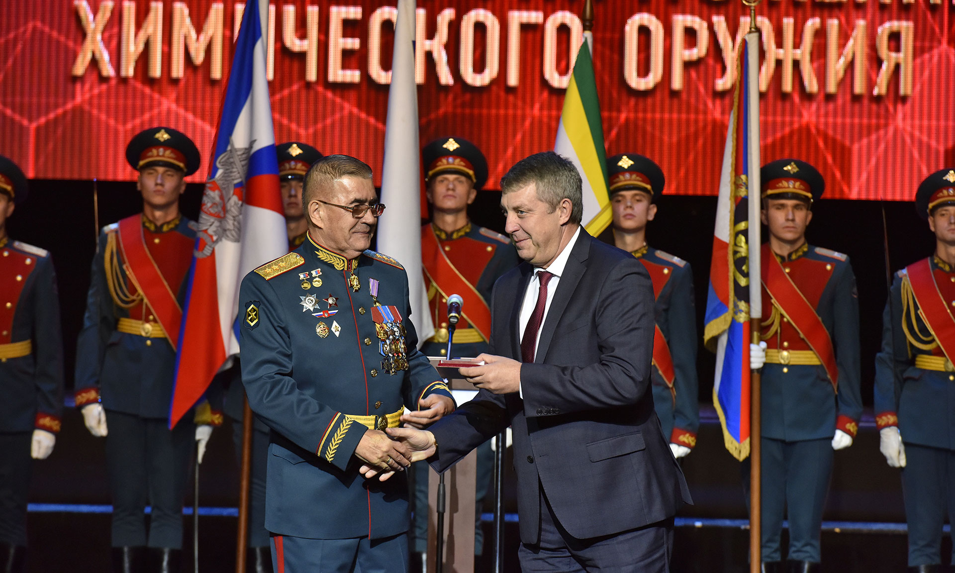 Мероприятие состоялось в Большом зале Центрального академического театра Российской Армии в Москве. Начальник Федерального управления по безопасному хранению и уничтожению химического оружия Валерий Капашин вручил Губернатору Брянской области Александру Богомазу почетный знак «За выдающиеся заслуги и личный вклад в области химического разоружения».