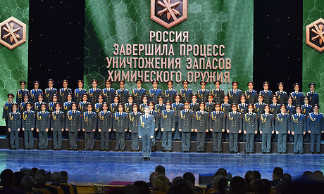 «Сегодня у нас очень важное, можно сказать, историческое событие, потому что сегодня будет ликвидирован последний химический боеприпас из российских арсеналов химического оружия. Без всякого лишнего пафоса можно сказать, что это действительно историческое событие, имея в виду огромный объем, доставшийся нам еще с советских времен, арсенала химического оружия, которым можно было, как считают специалисты, уничтожить несколько раз все живое на земле. Это огромный шаг в сторону придания современному миру более сбалансированного, более безопасного характера. Это значит, наша страна выполнит главное международное обязательство по Конвенции о запрещении химического оружия — полностью ликвидирует свое химическое оружие. Россия в числе первых подписала этот документ, тесно работала и работает с партнерами, чтобы избавить человечество от угрозы применения и распространения столь варварского смертоносного оружия», — сказал Владимир Путин.