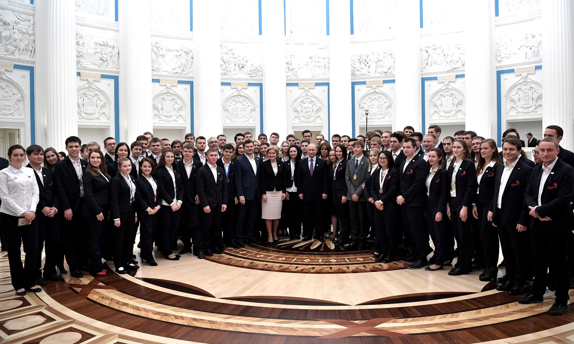 24 октября Владимир Путин принял в Кремле национальную сборную WorldSkills-Russia, занявшую первое место в общекомандном зачете по баллам в ходе 44-го чемпионата мира WorldSkills-2017. Глава государства подчеркнул, что стране нужны молодые и талантливые профессионалы: