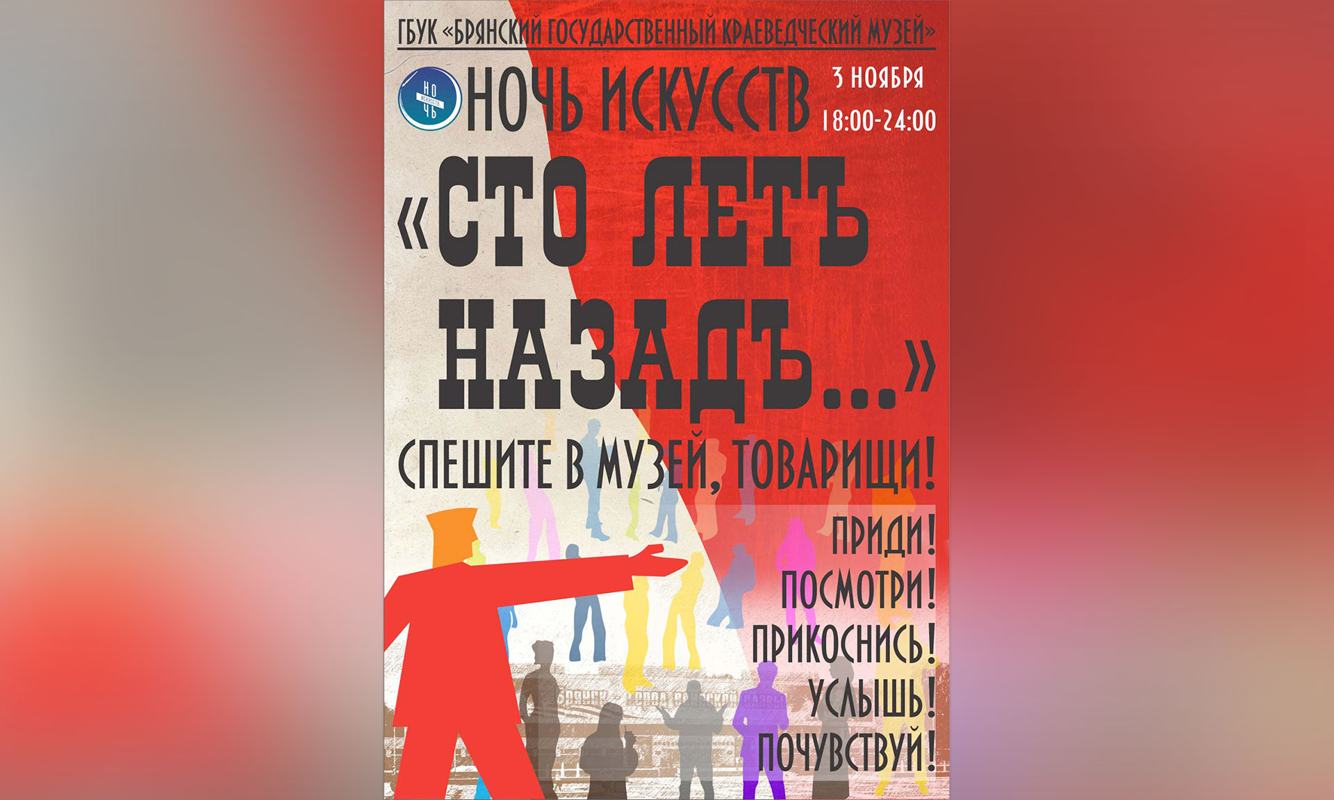 3 ноября Брянский государственный краеведческий музей в очередной раз примет участие во Всероссийской акции «Ночь искусств». В этом году для посетителей музея подготовлена культурная программа «Сто лет назад».