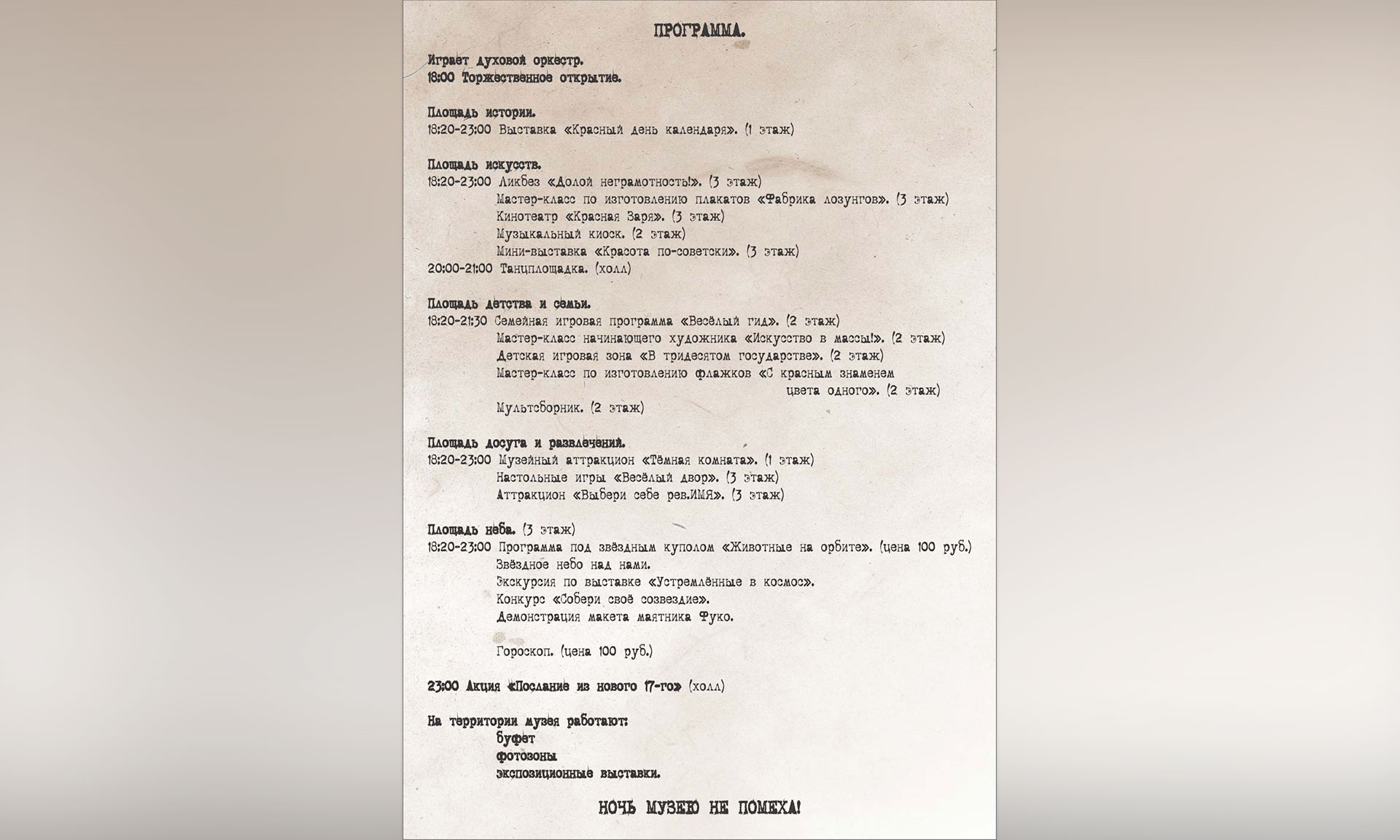 С 18 часов до полуночи на трех этажах музея будут работать множество разнообразных тематических площадок, стилизованный буфет и фотозоны.