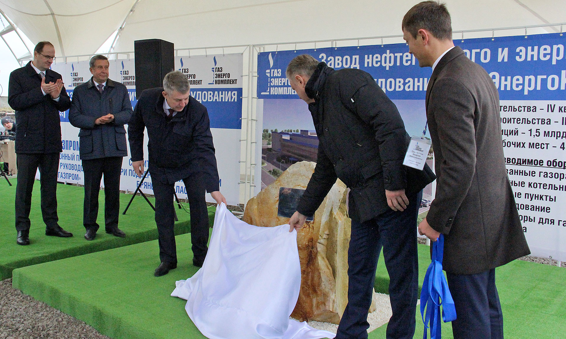 В церемонии закладки первого камня будущего завода приняли участие Губернатор Брянской области Александр Богомаз, председатель Брянской областной Думы Владимир Попков, член Правления, начальник Департамента ПАО «Газпром» Вячеслав Михаленко, генеральный директор ООО «Газпром трансгаз Москва» Александр Бабаков, начальник Брянское ЛПУМГ ООО «Газпром трансгаз Москва» Александр Шалатонов, генеральный директор ООО «ГазЭнергоКомплект» Андрей Прудников, заместитель Губернатора Брянской области Михаил Кобозев, глава администрации Брянского района Николай Якушенко.