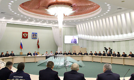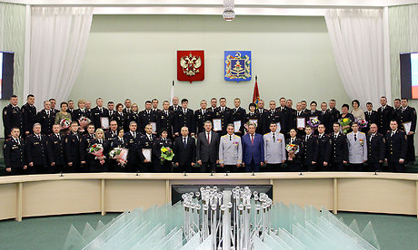 В этом зале собрались люди, которые добросовестным отношением к своему профессиональному долгу являются примером, как для коллег, так и для всех тех, кто обращается к ним за помощью и защитой. Многие удостоены государственных и ведомственных наград. Ваши коллеги сейчас на посту, несут службу и в других регионах страны. Вы продолжатели лучших традиций российской милиции, всегда готовы, даже рискуя жизнью, стать на защиту закона. Выражаю вам искреннюю признательность за верное служение родной России и Брянщине!