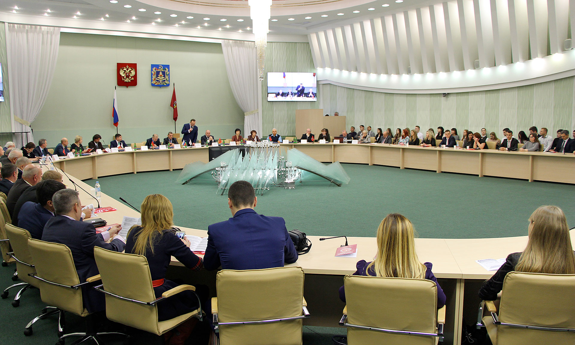 Пленарное заседание конференции состоялось в Хрустальном зале Правительства Брянской области. В мероприятии приняли участие: заместитель Председателя Брянской областной Думы Анатолий Бугаев, директор Департамента региональной безопасности Брянской области Виктор Терешонок, заместитель руководителя администрации Губернатора Брянской области и Правительства Брянской области — начальник Управления государственной службы и кадров Администрации Губернатора Брянской области и Правительства Брянской области Николай Мамичев, руководитель Управления Федерального казначейства по Брянской области Ольга Астахова, руководитель Управления Федеральной антимонопольной службы по Брянской области Сергей Ведерников, заместитель директора регионального департамента образования и науки Наталия Чернякова, председатель Общественного совета Брянска, председатель Брянского регионального отделения «Российское общество «Знание», заместитель директора Брянского филиала РАНХиГС Татьяна Болховитина, руководители и специалисты структур власти, ученые из разных городов России, ближнего и дальнего зарубежья, представители общественности Брянска.