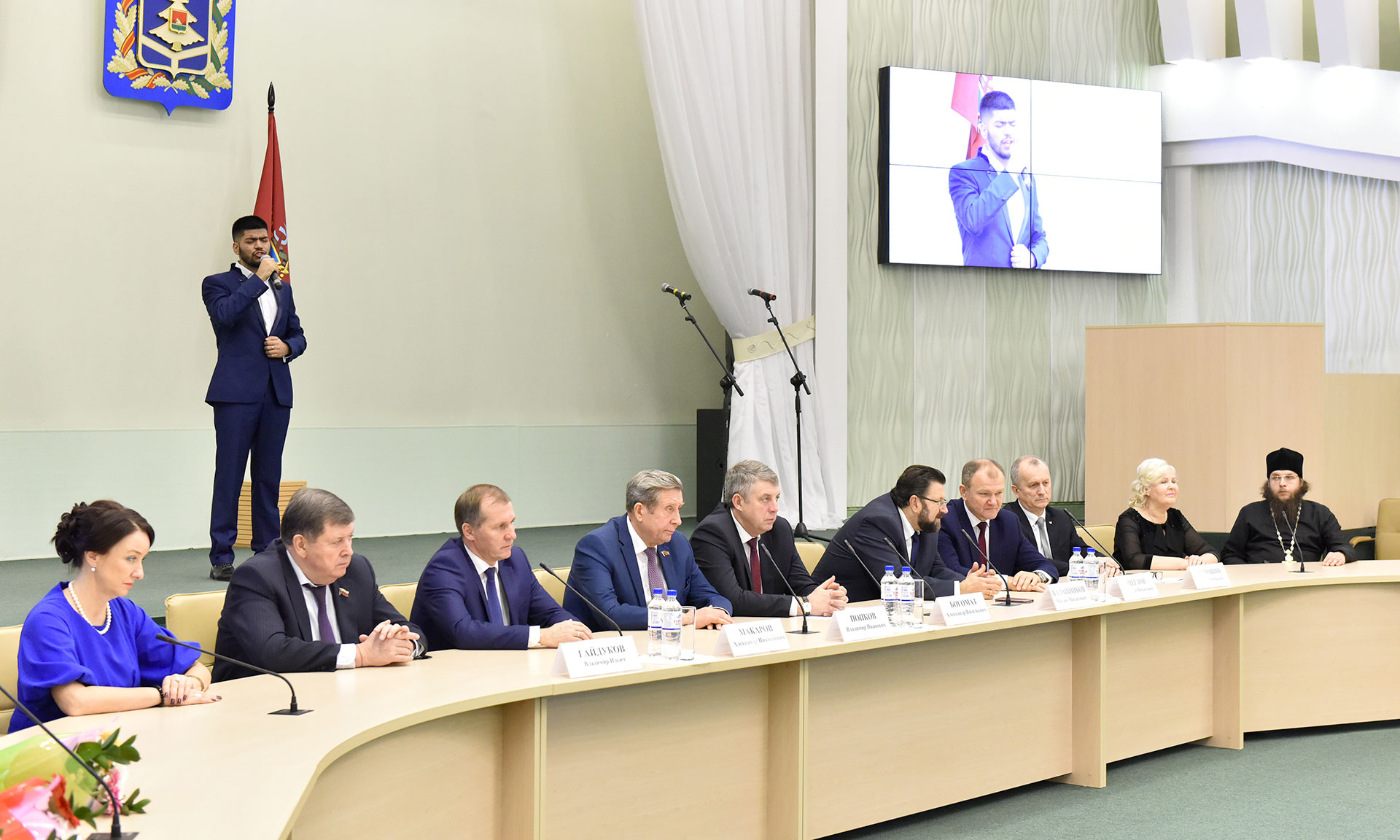 В торжественном мероприятии приняли участие: председатель Брянской областной Думы Владимир Попков, федеральный инспектор по Брянской области Михаил Калашников, глава Брянской городской администрации Александр Макаров, исполняющий обязанности главы города Брянска Владимир Гайдуков, заместители Губернатора Брянской области, депутаты Брянской областной Думы, руководители исполнительных органов государственной власти Брянской области, руководители общественных организаций.
