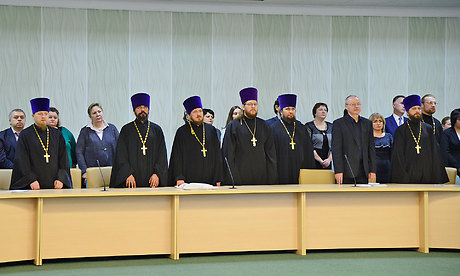 Заседание завершилось общей молитвой, после чего члены президиума, духовенство, руководители, главы управлений и департаментов Брянской области, а также победители конкурса поднялись на сцену для общего фотографирования.