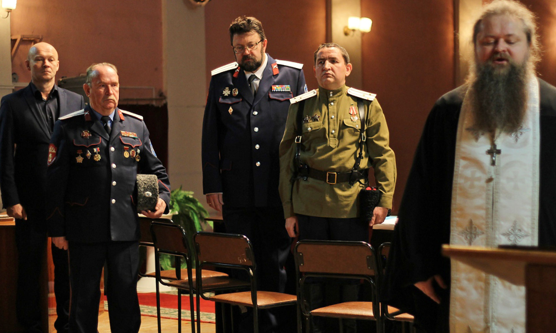 После того, как под звуки гимна внесли казачьи знамена, казаки перед молитвой почтили минутой молчания память атамана хуторского казачьего общества «Любышское» Валерия Аксёнова.