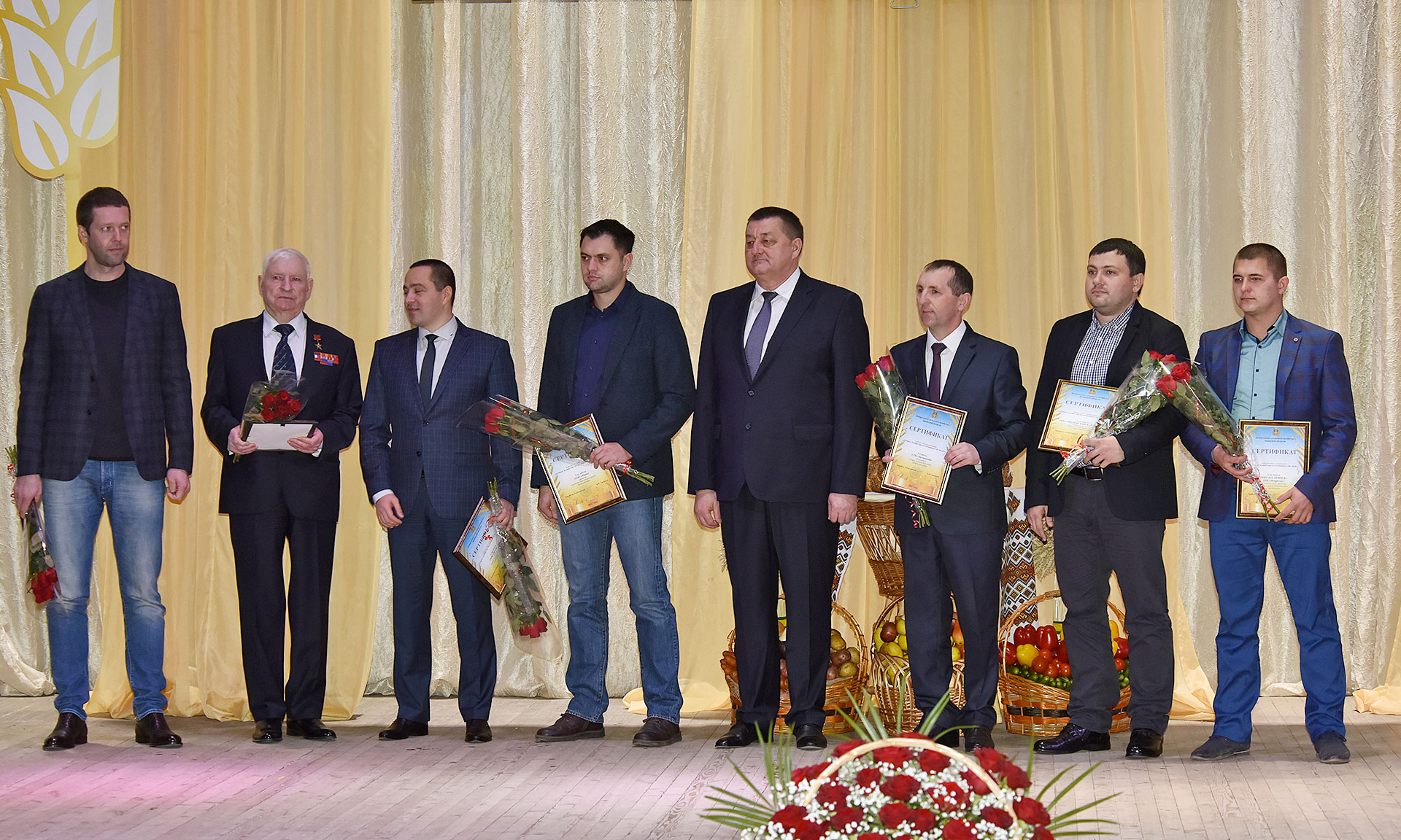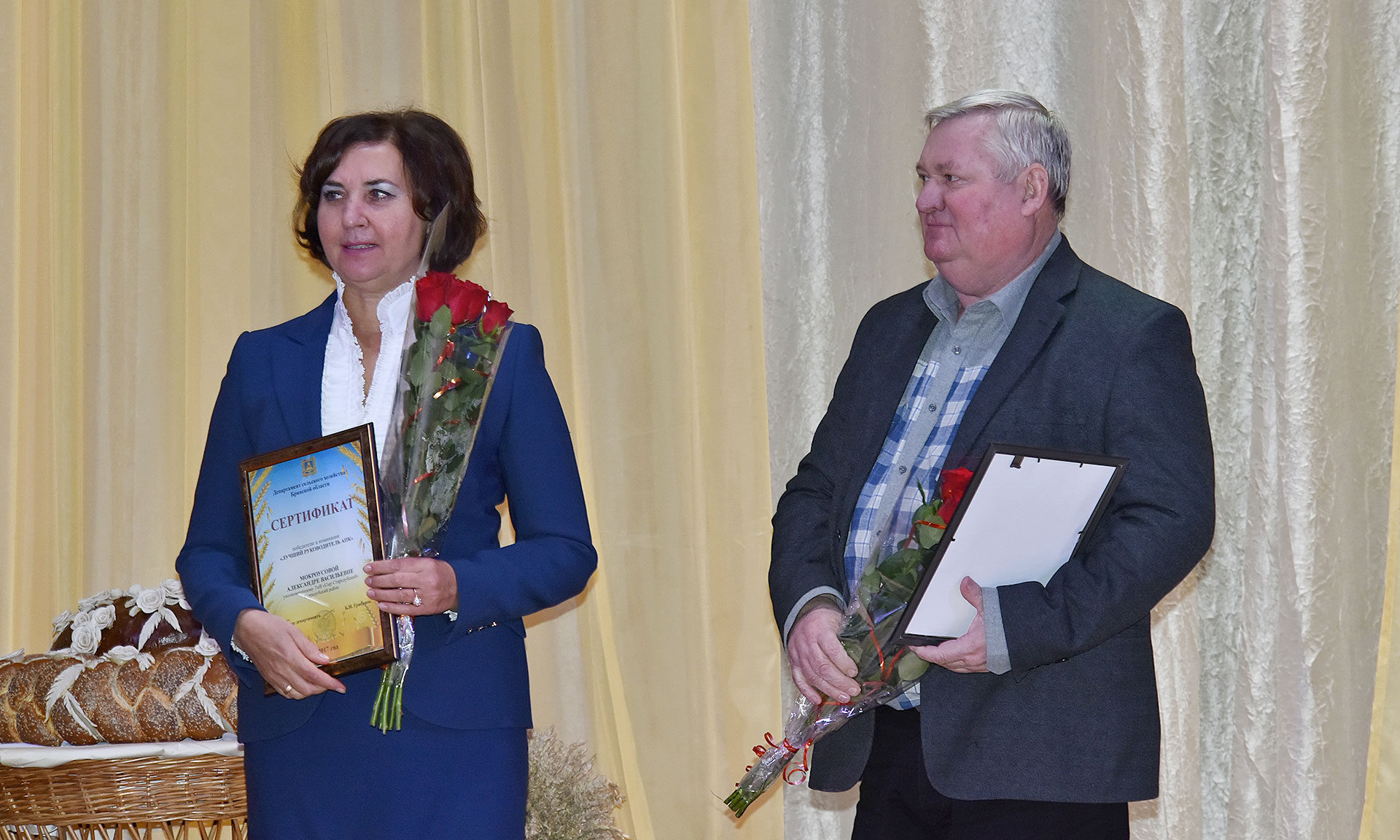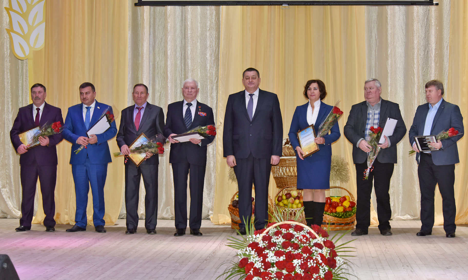 Особую благодарность в этот праздничный день все, выступающие на сцене, выразили людям, которые связали свои судьбы с сельским хозяйством, отдали значительную часть своей жизни, внесли значительный вклад в развитие отрасли, огромный опыт которых сегодня бесценен. В номинации «Лучший руководитель АПК» награждены: Георгий Лобус — генеральный директор ООО «Красный Октябрь», Александр Лобынцев — глава К(Ф)Х «Платон», Василий Клюенков — генеральный директор ООО «Сельхозник», Александра Мокроусова — уполномоченный ТнВ «Сыр Стародубский», Виктор Коршунов — председатель ТнВ «Десна», Александр Самусенко — председатель СПК «Надежда», Владимир Селькин — директор ООО «Агросмак».