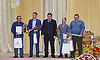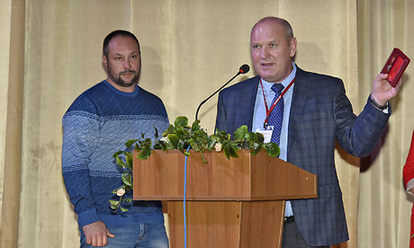 Генеральный директор ООО «ФосАгро-Орел» Анатолий Ярмоленко в номинации «За многолетнюю успешную работу по сохранению и восстановлению плодородия почв земель сельскохозяйственного назначения и внедрение в производство новых высокоэффективных марок минеральных удобрений» наградил Георгия Лобуса, Василия Клюенкова, Александра Жутенкова.
