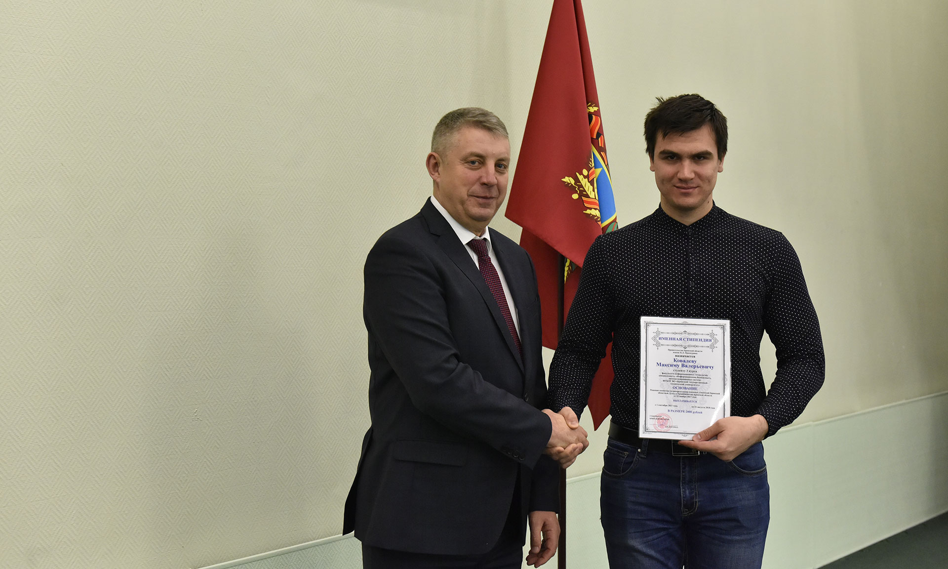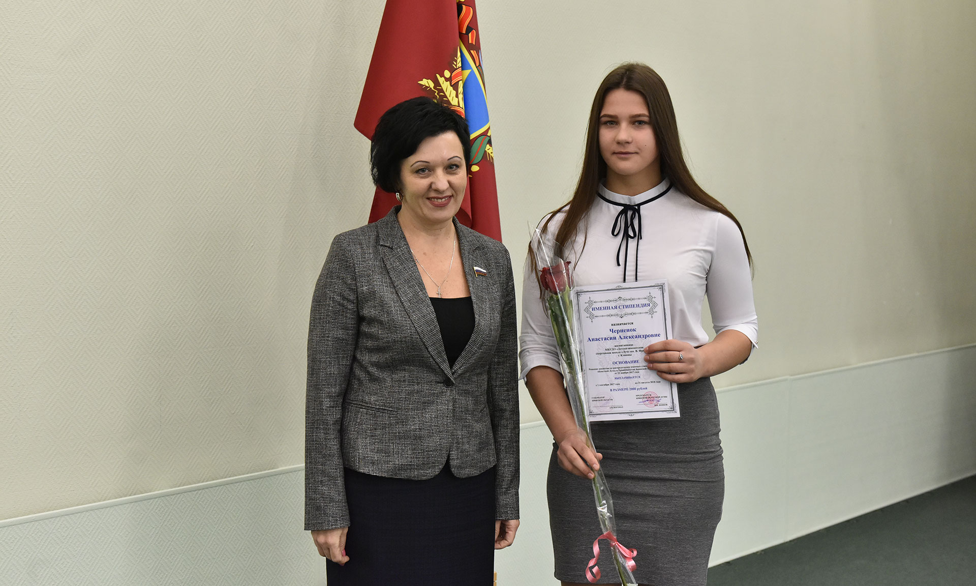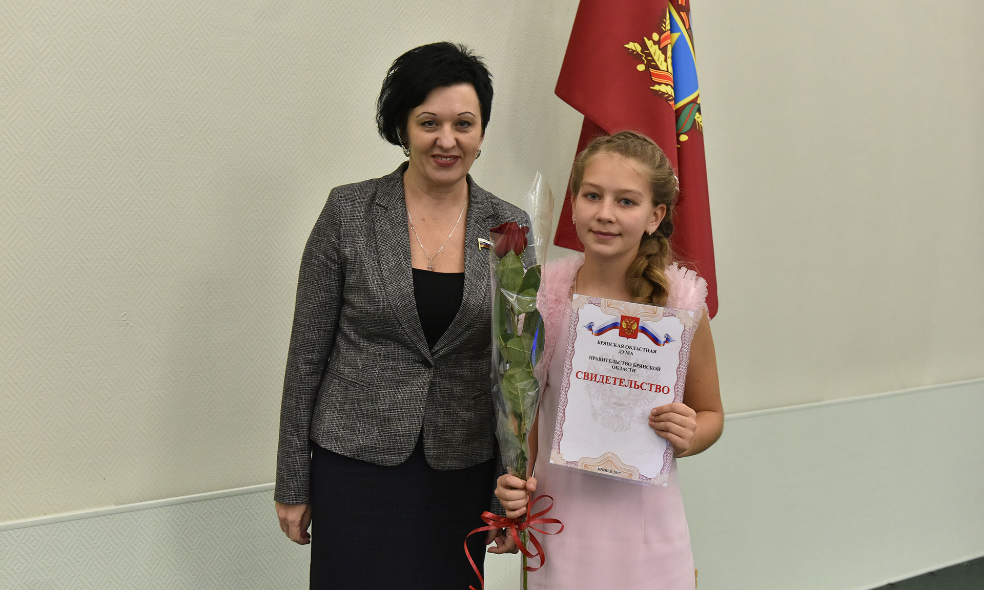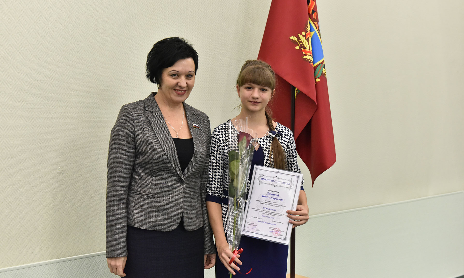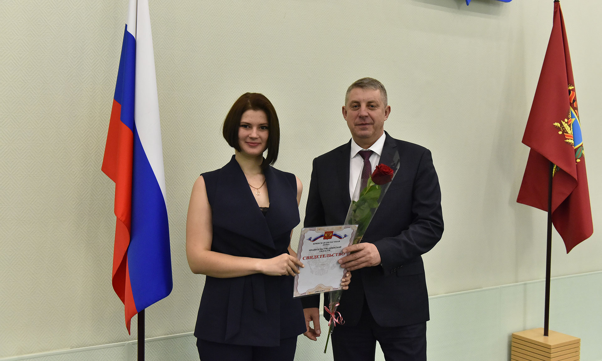 28 ноября в Хрустальном зале Правительства Брянской области состоялась торжественная церемония чествования именных стипендиатов Брянской областной Думы и Правительства Брянской области, а также вручение свидетельств о назначении именных стипендий Правительства Брянской области имени П. Л. Проскурина.