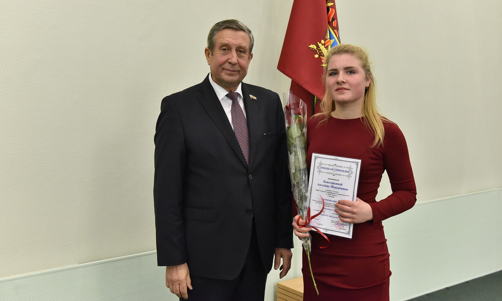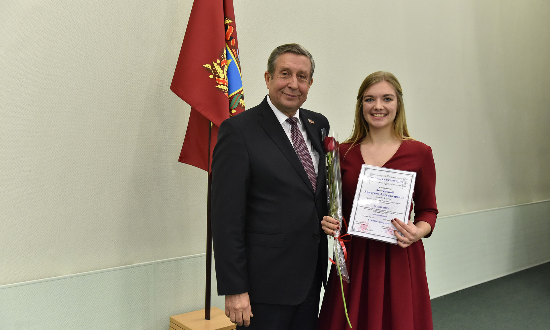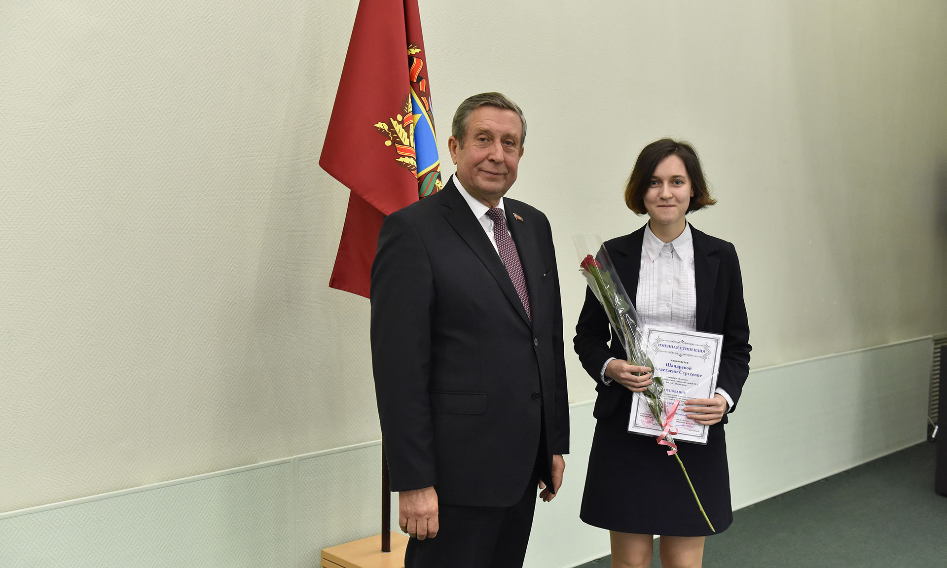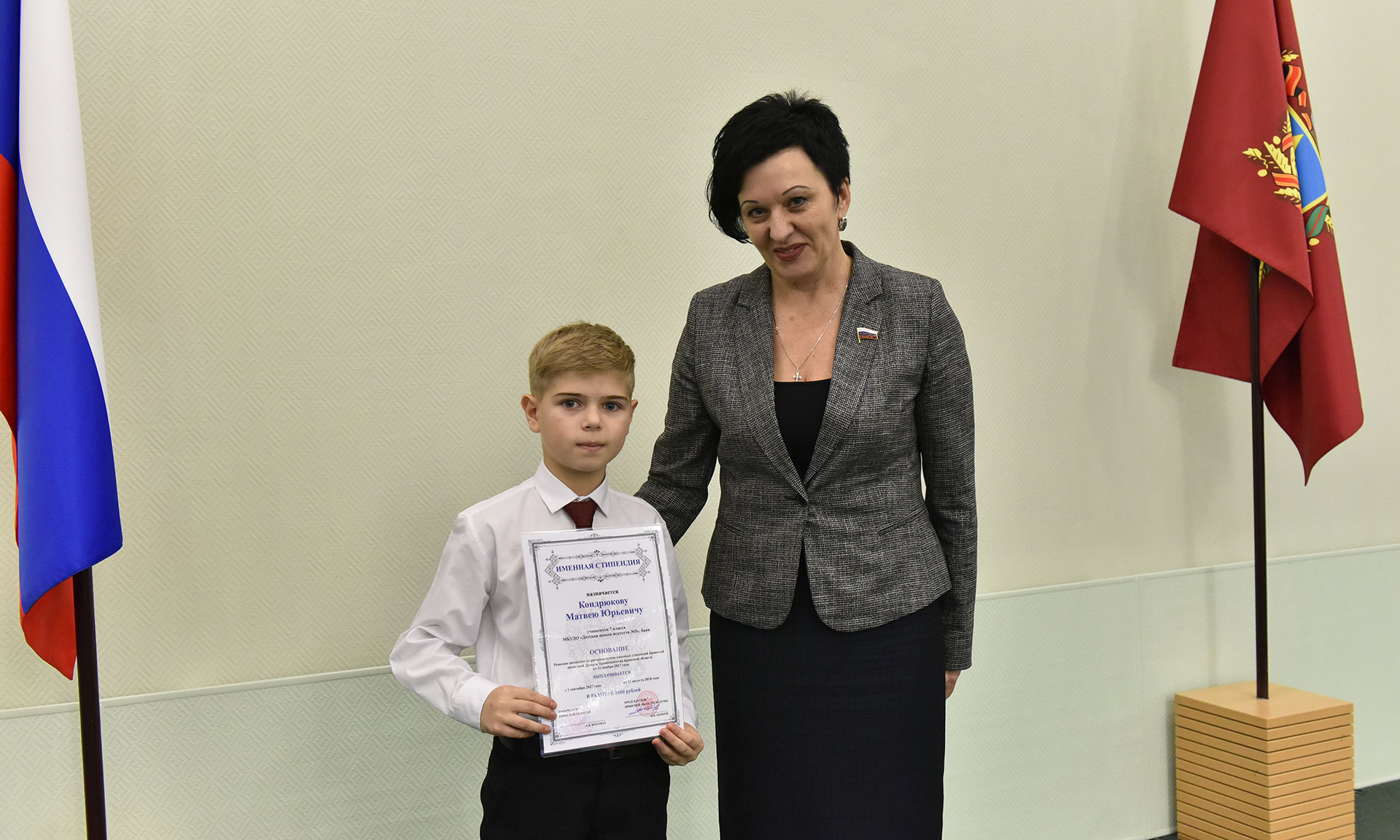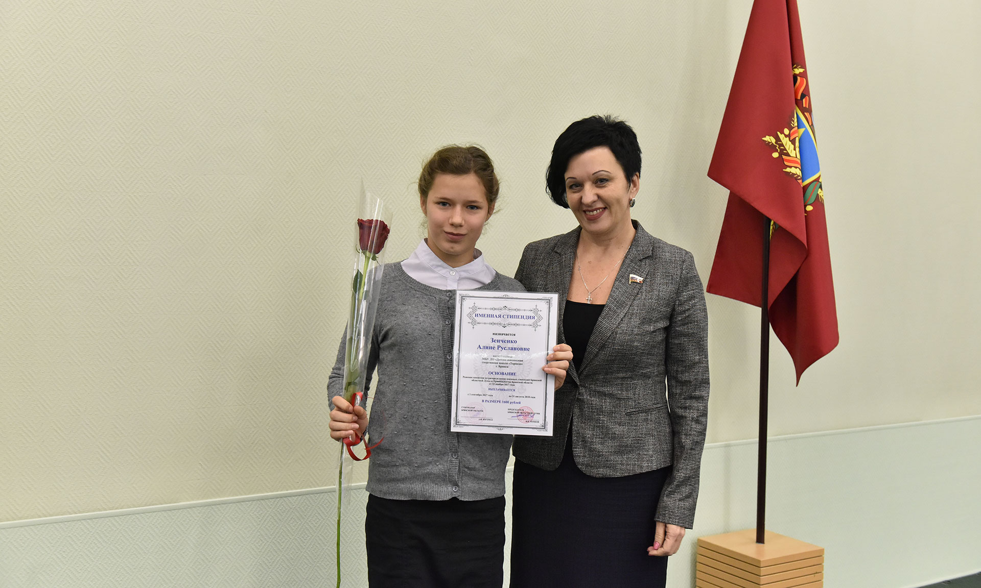 28 ноября в Хрустальном зале Правительства Брянской области состоялась торжественная церемония чествования именных стипендиатов Брянской областной Думы и Правительства Брянской области, а также вручение свидетельств о назначении именных стипендий Правительства Брянской области имени П. Л. Проскурина.