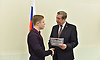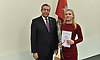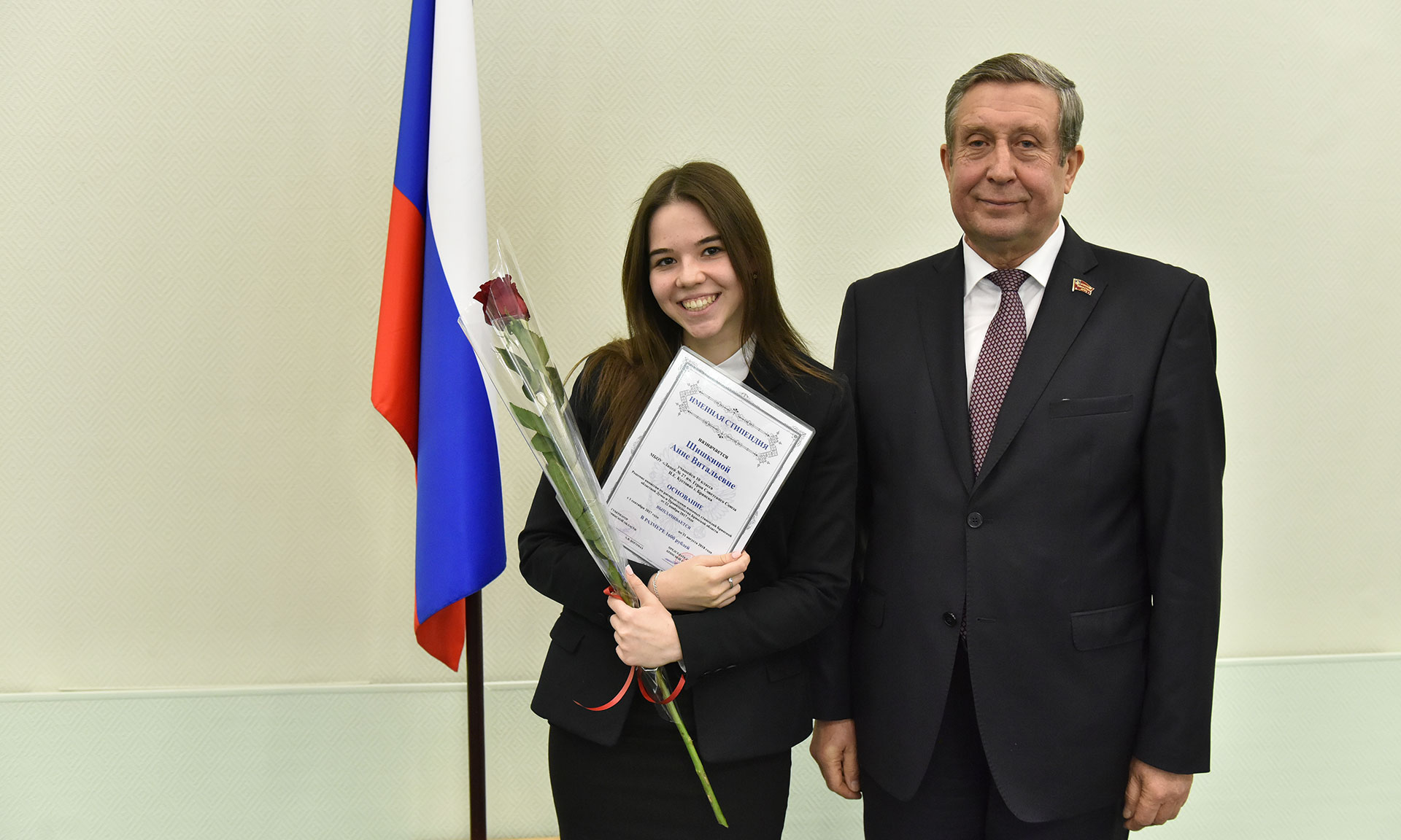 — Дорогие ребята, здесь впервые присутствует председатель комитета Брянской областной Думы по образованию, науке, культуре и СМИ Владимир Михайлович Пронин, который сказал сейчас мне, что стипендии, которые мы вручаем, действительно важны и такая забота о нашей молодежи сегодня — это большой вклад в наше будущее, а вот размер стипендий небольшой. Так вот, мы посовещались — здесь присутствует председатель областной Думы, два председателя профильных комитета нашего заксобрания — и приняли решение, со следующего года увеличить именные стипендии в два раза. Так что, ребята, вам остается лишь продолжать также усердно учиться и творить. Еще раз желаю вам успехов и всего самого доброго!