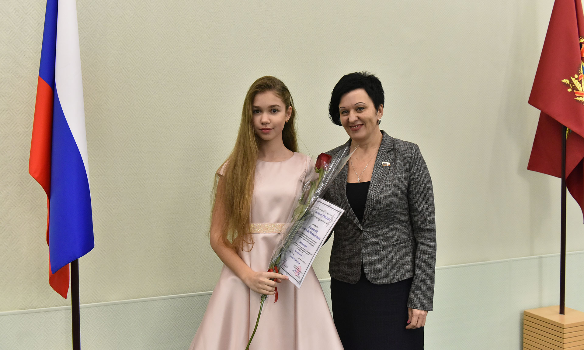 Со словами приветствия к стипендиатам обратилась депутат Государственной Думы Валентина Миронова:
