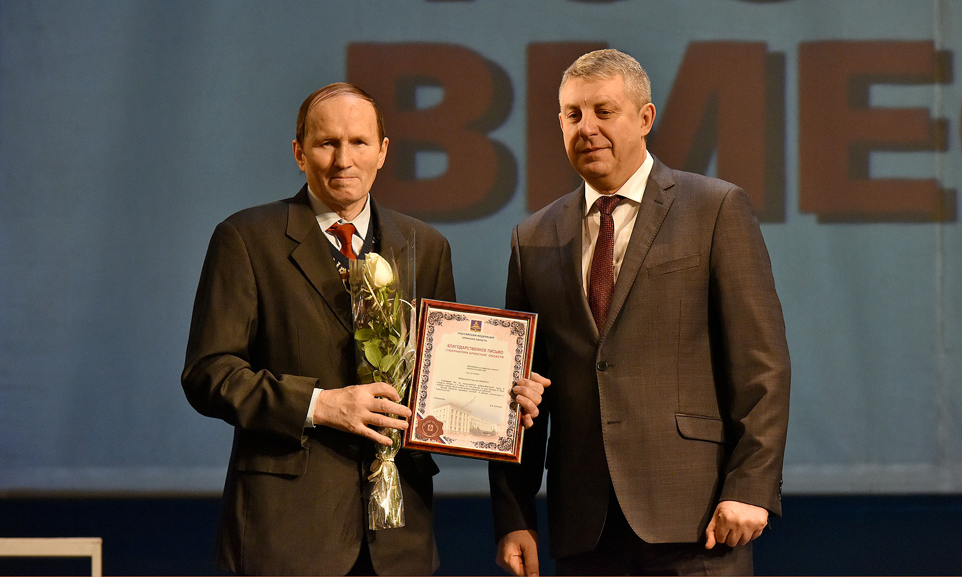— Дорогие друзья! Уважаемые журналисты и ветераны! Сегодня в этом зале мы собрались для того, чтобы отметить знаменательную дату для всей нашей Брянской области — 100-летие со дня образования газеты «Брянский рабочий». Для всех, кто присутствует в этом зале, и для тех, кто стоял у истоков создания газеты, сегодняшний праздник — это еще и дань уважения, благодарности и признательности от жителей Брянской области, которые все эти годы были вашими преданными читателями.