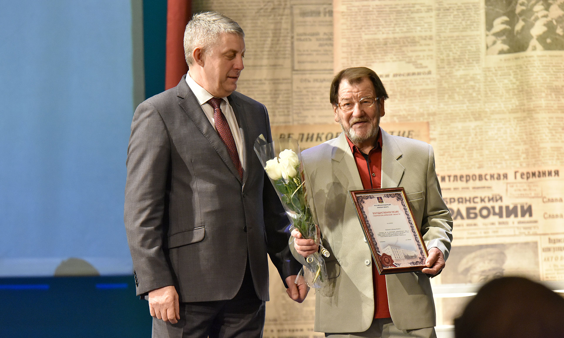 5 декабря Губернатор Александр Богомаз принял участие в театрализованном вечере, посвященном 100-летию газеты «Брянский рабочий».