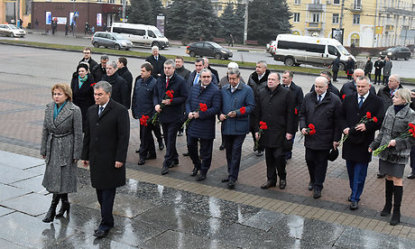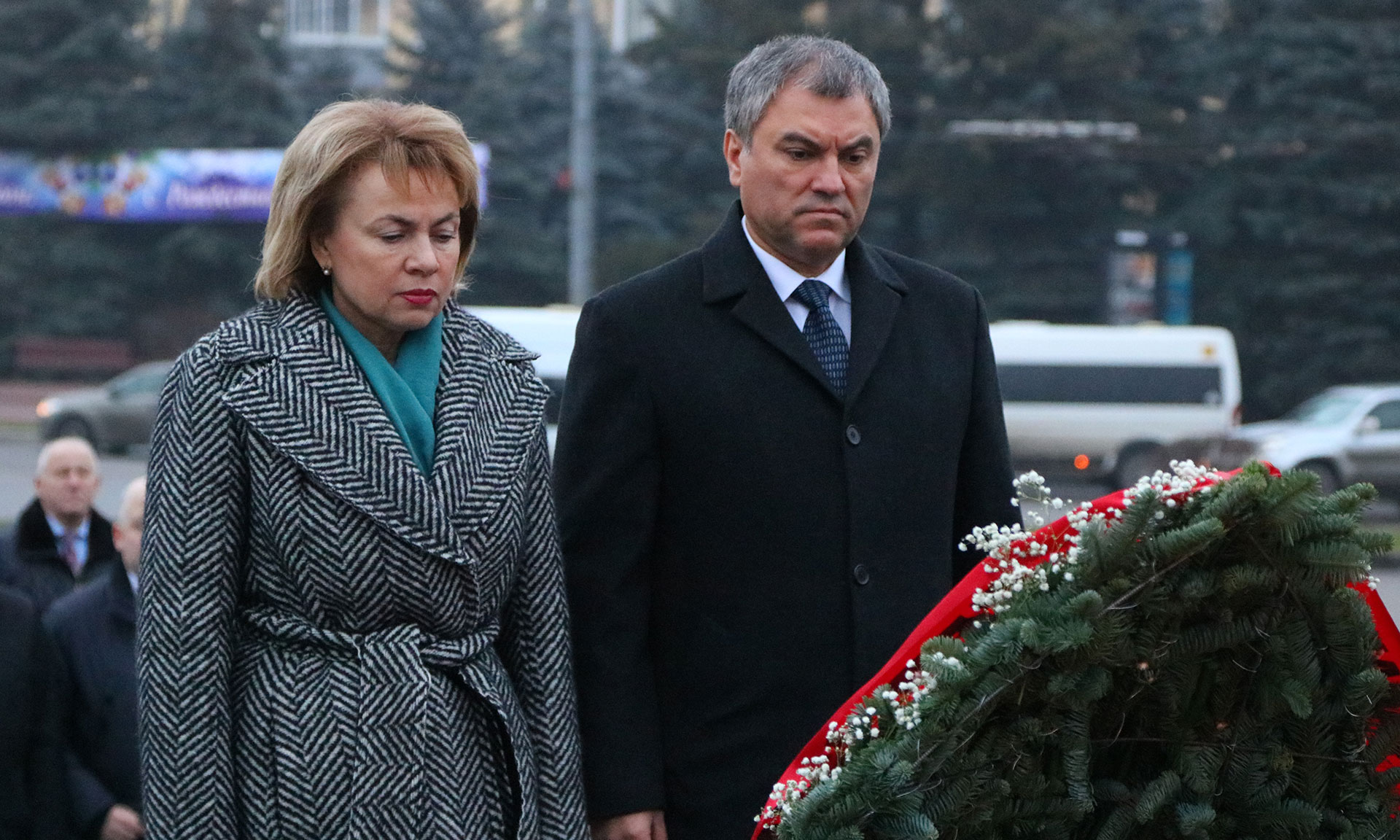 В Брянске открылась 53-я сессия Парламентского Собрания Союза Беларуси и России. Перед открытием сессии парламентарии возложили цветы к Вечному огню на Площади Партизан — памятнике воинам и партизанам — освободителям Брянска.