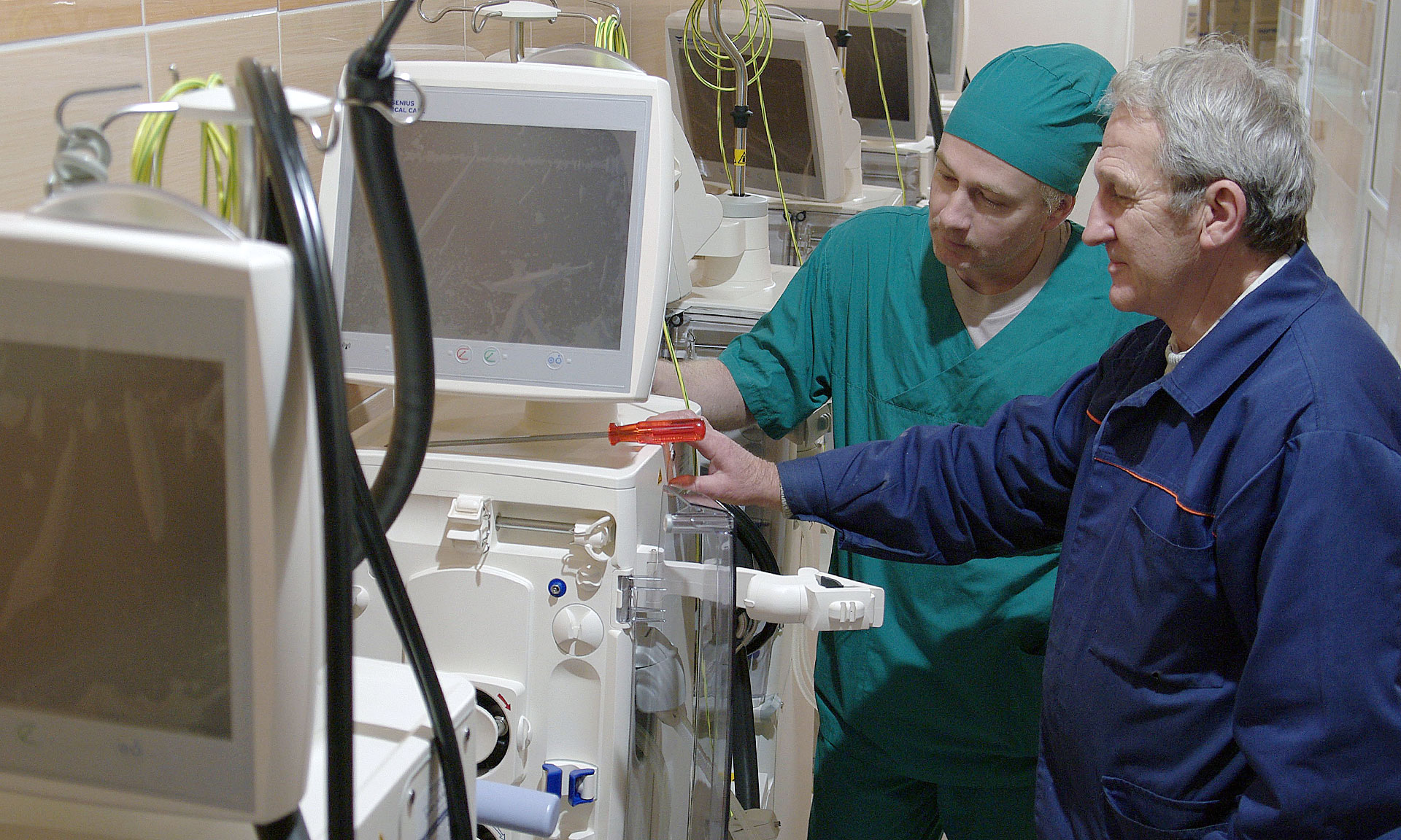 Каждый такой пациент в Брянске и Унече получает 156 сеансов в год, а потому имеющееся оборудование работает, по сути, на износ — шведские аппараты близки к выработке своего ресурса. Вот почему, понимая об ответственности за жизни своих подопечных, людей, нуждающихся в заместительной почечной терапии, было принято решение о приобретении новых современных аппаратов немецкой фирмы «Фрезениус». Всего их приобретено 35 штук, что позволит полностью обновить парк техники. В монтаже аппаратов участвуют инженеры московского представительства «Фрезениуса» и инженеры больничного отделения гемодиализа. Кстати, в отделении сегодня трудятся 4 врача-нефролога диализа, 12 медицинских сестер, два инженера по обслуживанию аппаратуры и два психолога.