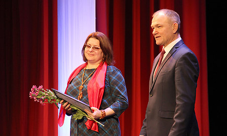 После поздравлений состоялась церемония награждения. Лучшим представителям органов ЗАГСов Брянской области вручили Почетные грамоты, благодарности, Благодарственные письма и памятные подарки.