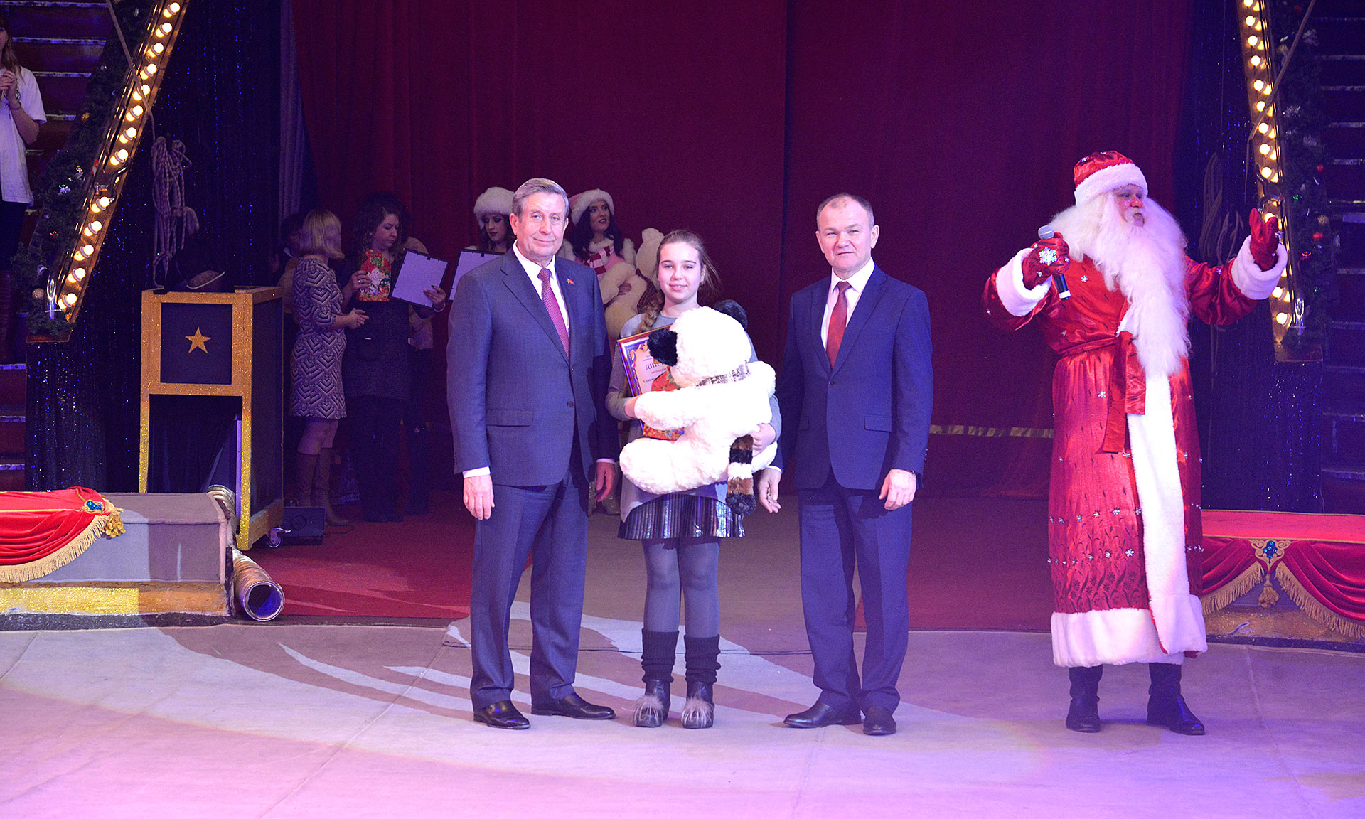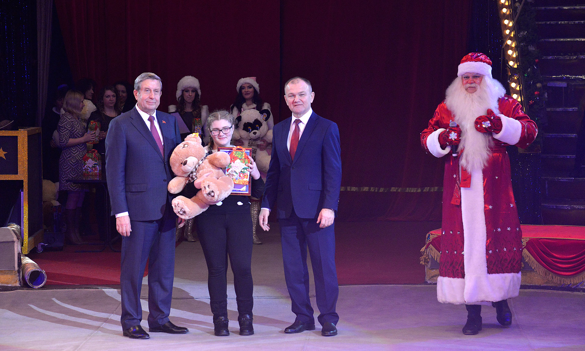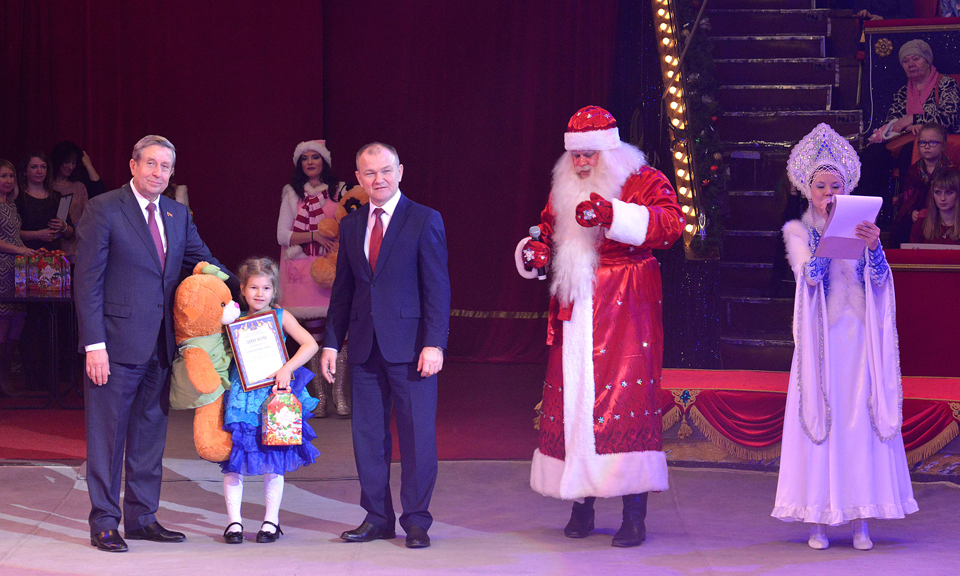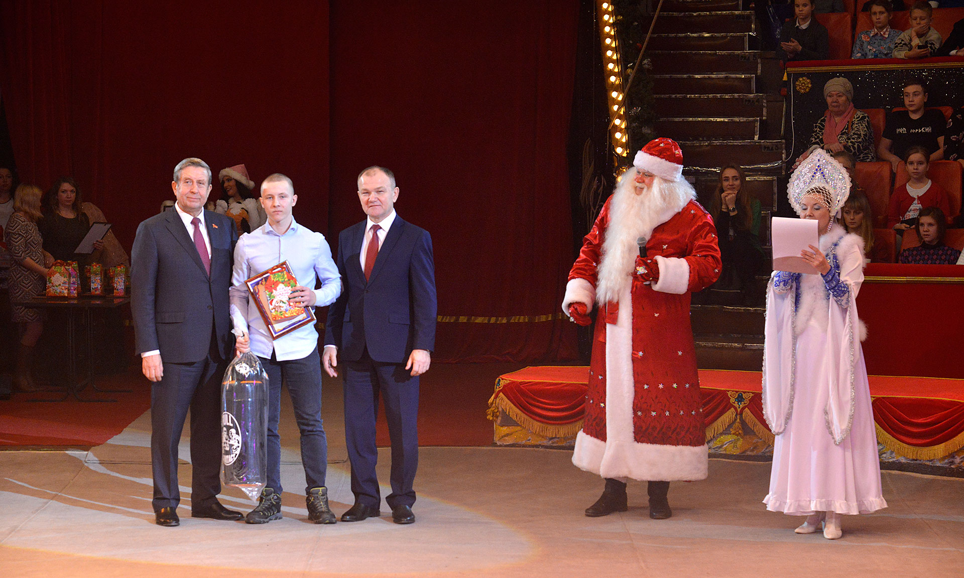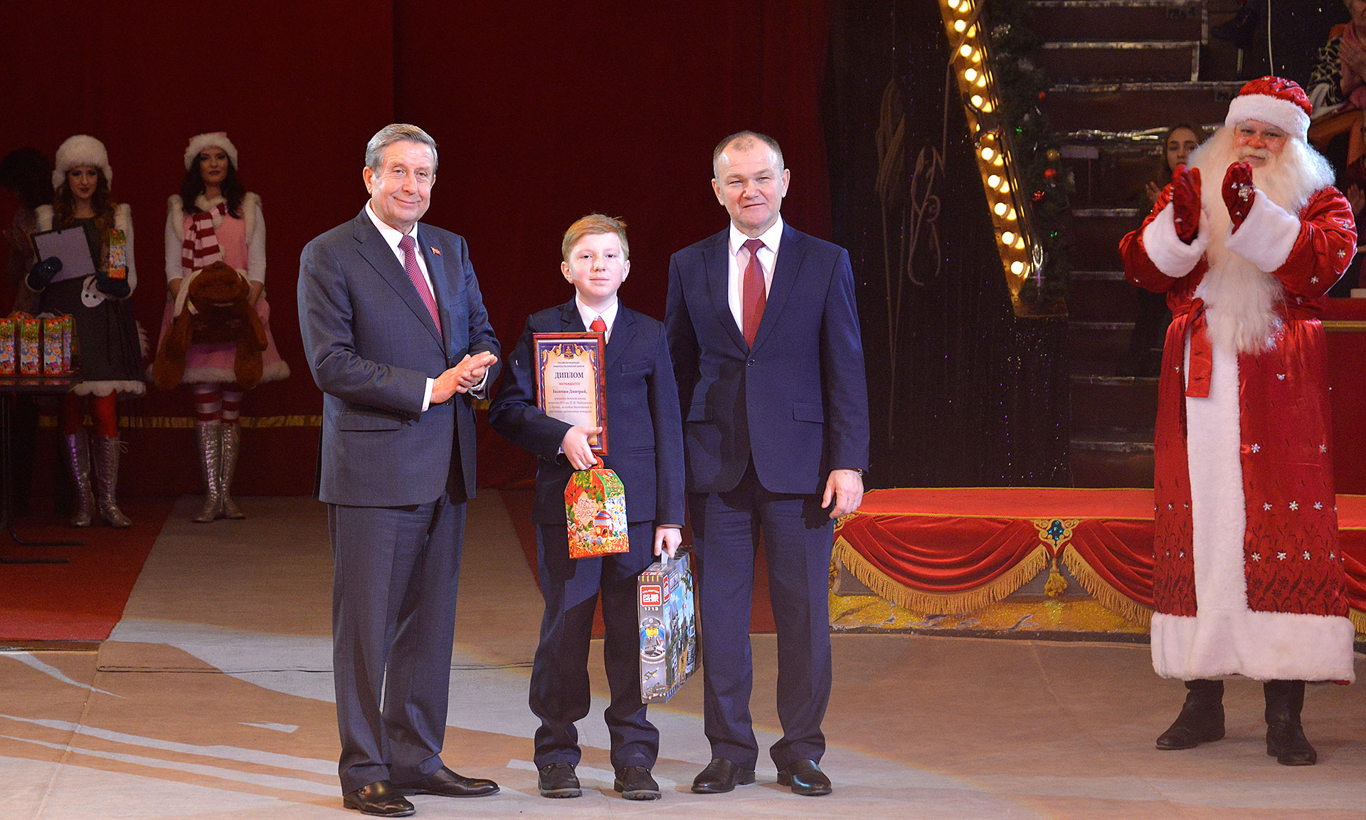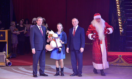 После награждения дети увидели главный подарок Губернатора — новогоднее цирковое представление. Также мальчишек и девчонок ожидало немало приятных сюрпризов, игр и интересных развлечений, а после представления детишки получили сладкие подарки.