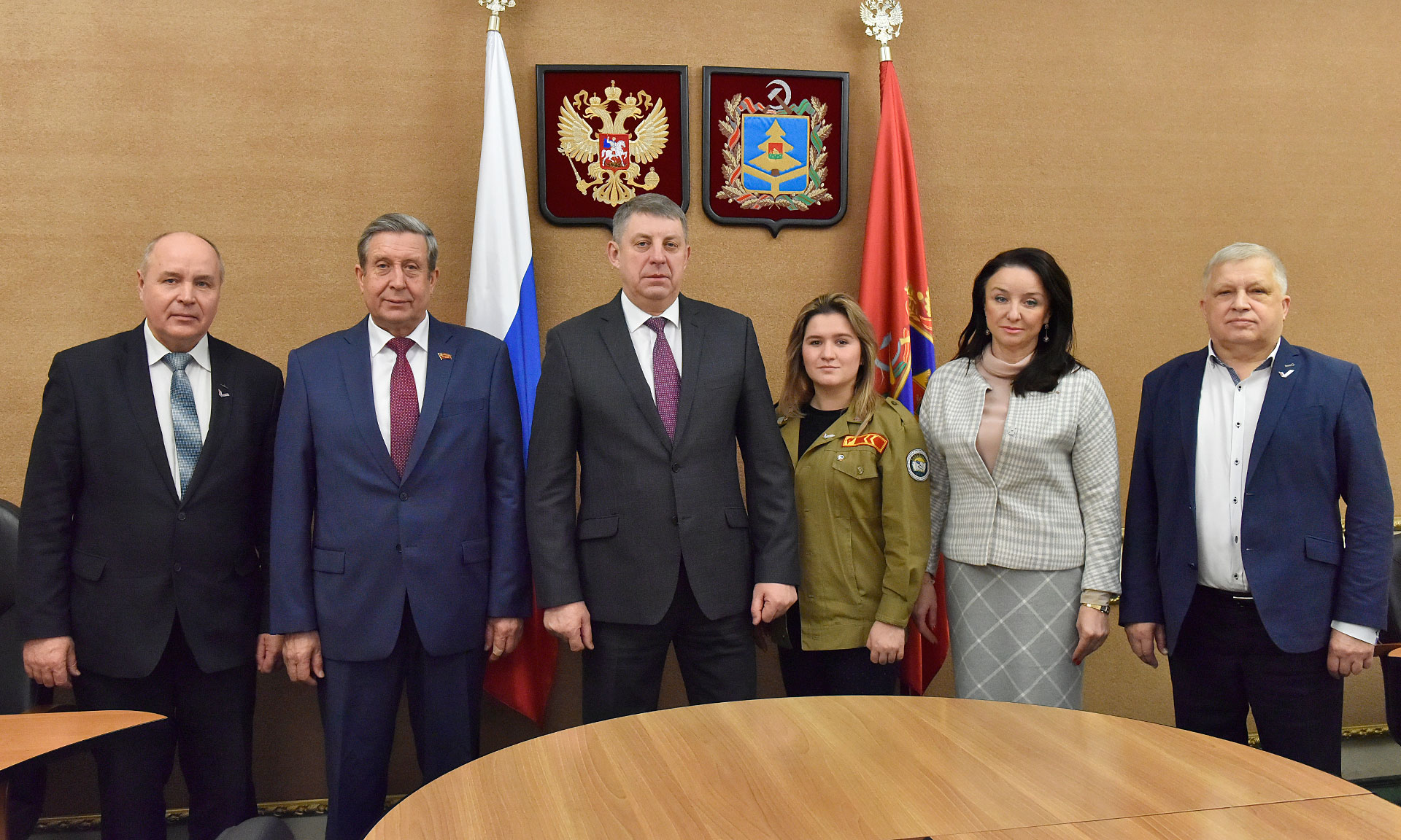 Во встрече приняли участие председатель Брянской областной Думы Владимир Попков, заместитель Губернатора Брянской области Александр Коробко, руководитель регионального исполкома Общероссийского народного фронта в Брянской области Лариса Третьякова, сопредседатели Регионального штаба Общероссийского народного фронта в Брянской области Валерий Родоманов и Виктор Андреев, комиссар Брянского регионального отделения Молодежной общероссийской общественной организации «Российские студенческие отряды» Дарья Прошкина.