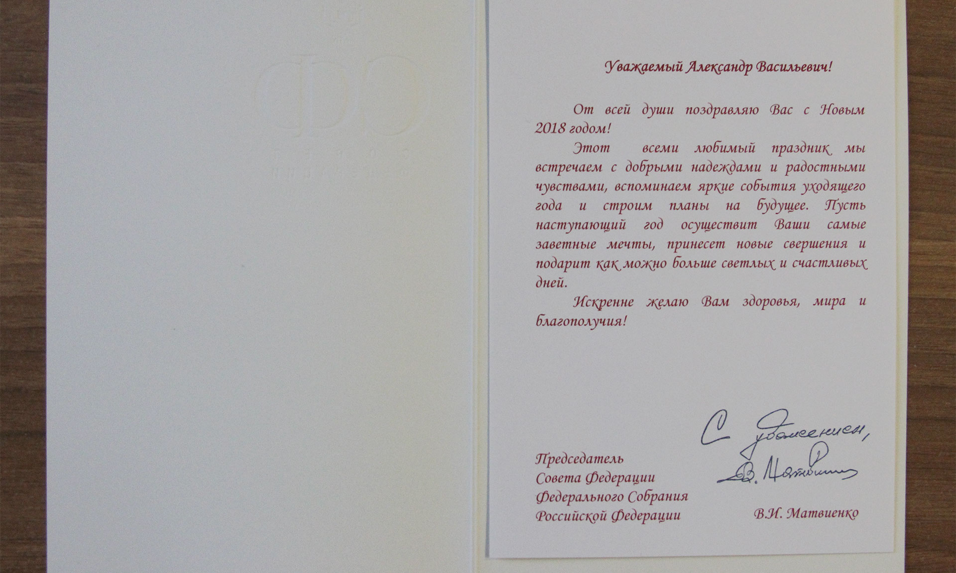 Губернатора Брянской области поздравила Председатель Совета Федерации Федерального Собрания Российской Федерации Валентина Матвиенко. В поздравлении говорится: