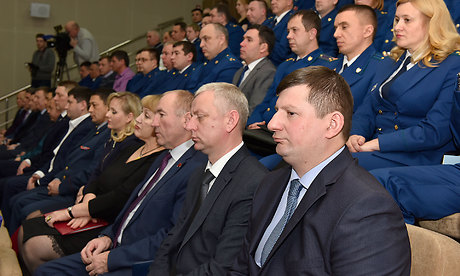 — Уважаемые коллеги, уважаемые соседи! Сердечно поздравляю с профессиональным праздником и новосельем! Я думаю, очень знаково, что вы расположены на улице имени Рекункова, который более 30 лет назад брал меня на работу и присваивал мне первый классный чин. Это говорит о том, что у нас с вами общая история. Мы бок о бок идем с вами по жизни. И тот же Рекунков, будучи молодым лейтенантом при форсировании Днепра в районе Рогачева, получил ранение. Сухарев Александр Яковлевич — один из генеральных прокуроров СССР — тоже на Лоевской земле при форсировании Днепра получил ранение. Вот так переплелись судьбы прокуроров, которые нас брали на работу. Сегодня говорили про санкции. Так вот, не волнуйтесь, Белоруссия 25 лет живет под санкциями и, слава Богу, здравствует и процветает! Я хочу сказать от имени белорусского прокурора, что мы сегодня с вами решаем одну задачу. К сожалению, преступность сегодня не имеет границ. Кто бы ни совершил преступление, гражданин Российской Федерации или Белоруссии, он должен сидеть в тюрьме. Наша задача — скоординировать работу так, чтобы преступники чувствовали, что понесут ответственность. Удачи вам, благополучия и счастья вашим семьям, с праздником!