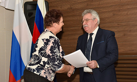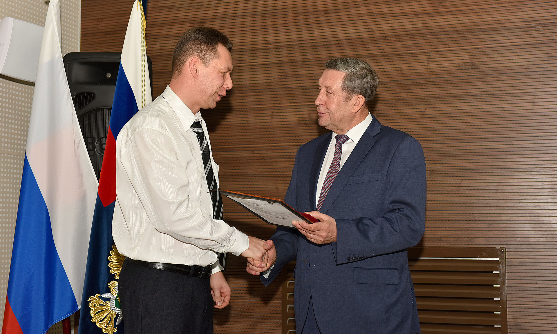 Главный федеральный инспектор по Брянской области Афанасий Киселев передал сотрудникам прокуратуры поздравления от полномочного представителя Президента в Центральном федеральном округе Алексея Гордеева и зачитал памятный адрес: