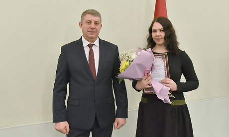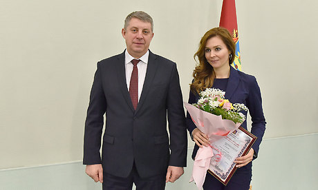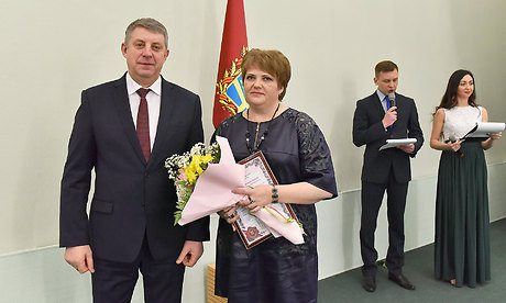Александр Богомаз вручил награды победителям областного творческого конкурса журналистов на соискание премий Губернатора Брянской области. Благодарственным письмом Губернатора Брянской области и денежной премией в размере 100 тысяч рублей награждены корреспондент телерадиокомпании «Брянская губерния» Елена Бочкарева, главный редактор Жуковской районной газеты Брянской области «Жуковские новости» Олег Михеев, шеф-редактор службы радиовещания ГТРК «Брянск» Екатерина Трофимова.