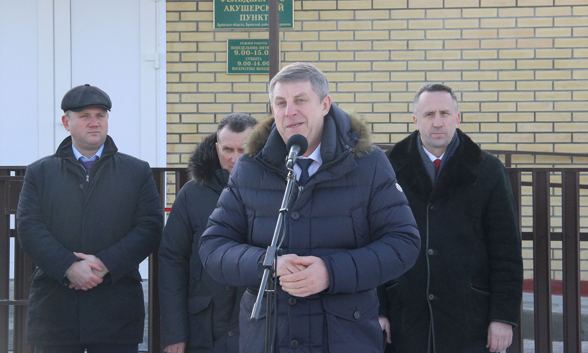 26 января Губернатор Александр Богомаз принял участие в торжественной церемонии открытия фельдшерско-акушерского пункта в селе Журиничи Брянского района.