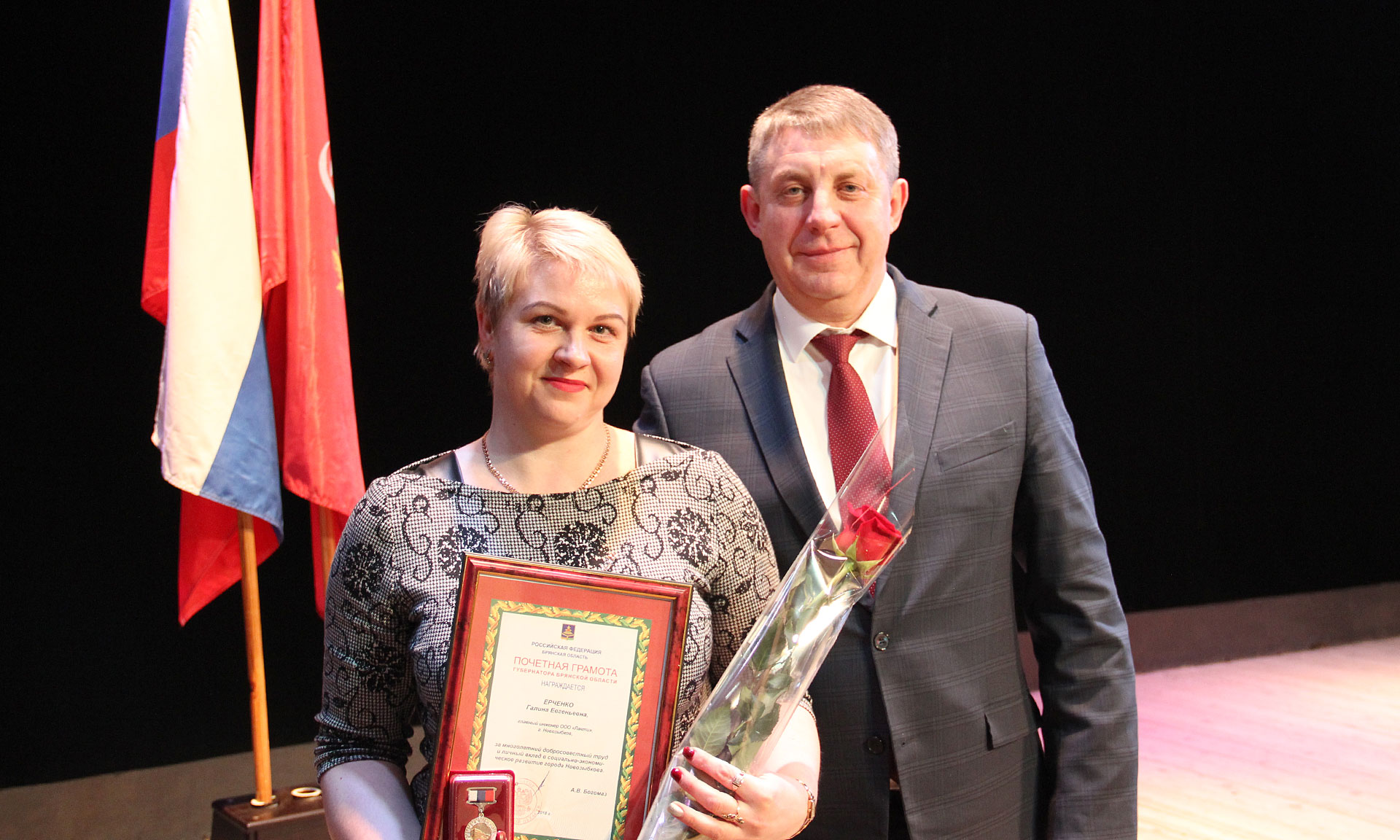 В завершение встречи Губернатор поздравил всех присутствующих женщин с приближающимся Международным женским днем. Александр Богомаз пожелал женщинам крепкого здоровья, удачи, всех благ и успехов в сохранении домашнего очага. Также в этот день Почетными грамотами и Благодарственными письмами наградили лучших тружеников Новозыбкова.