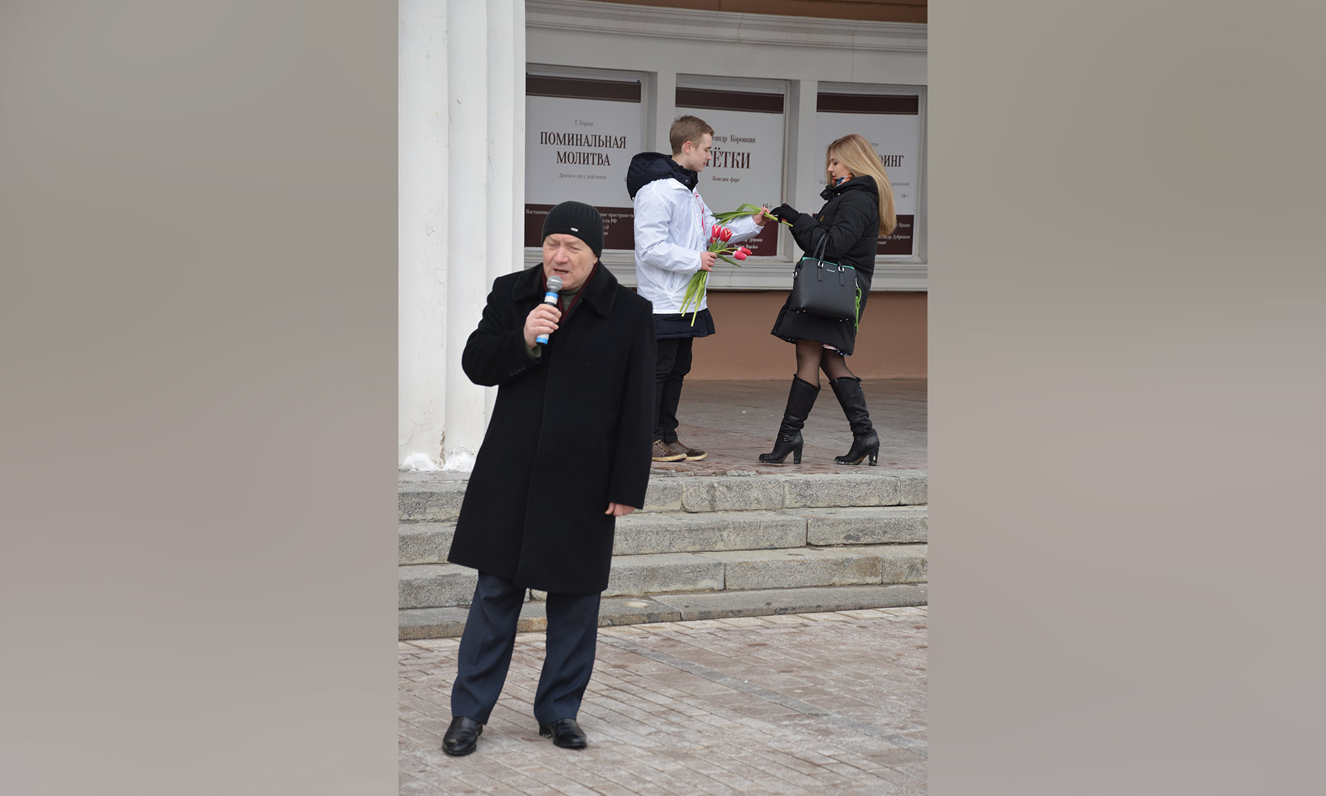 К акции присоединились поэты и председатель Брянского регионального отделения Союза писателей России Владимир Сорочкин, которые порадовали женщин своим творчеством.
