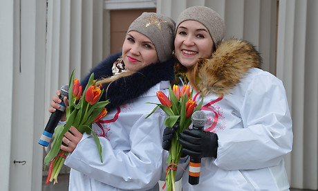 Сегодня волонтеры высших учебных заведений Брянской области дарили цветы всем женщинам, которые оказались на Театральной площади и ехали в автомобилях. Волонтеры поздравляли девочек, девушек, женщин, пели песни и желали больше улыбок и солнечных дней.