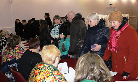 В Почепском районе активно идут избиратели на участки для голосования. На многих из городских участков людей встречает торговля свежей выпечкой, музыка, на участке № 769 открылась необыкновенной красоты выставка «Волшебство детских рук», а в сельском Доме культуры хор ветеранов под управлением Владимира Зубова собрал зрителей, желающих послушать концерт в честь четвертой годовщины воссоединения России с Крымом.