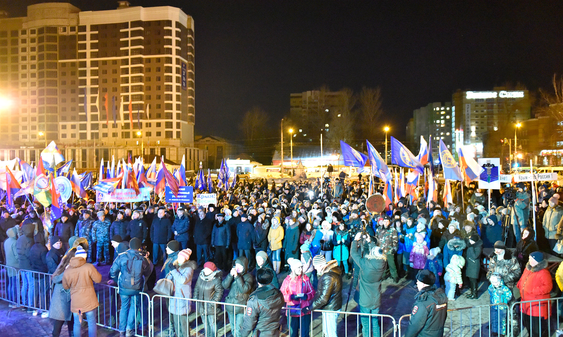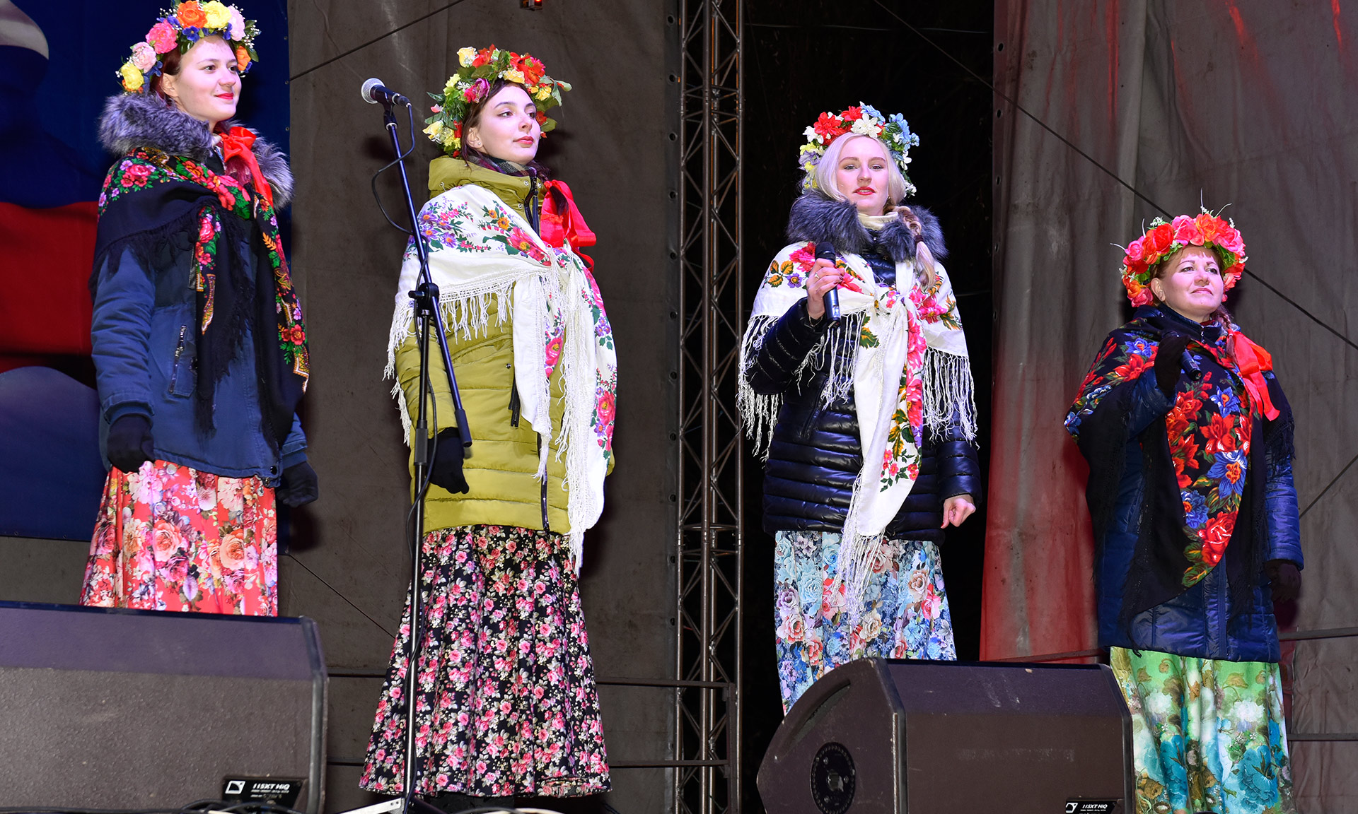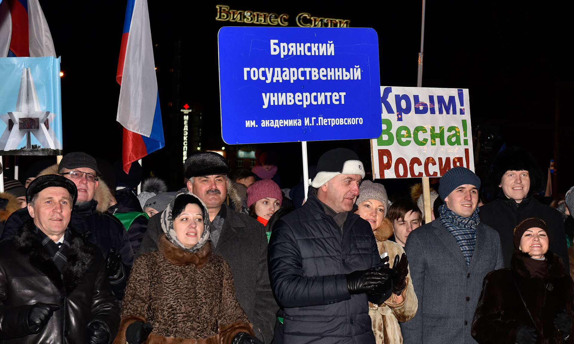 Ансамбль народной музыки «Ватага» исполнил песню «Россию строят мужики», которой подпевала вся площадь. Брянщина сделала свой выбор, и это курс на стабильность и устойчивое развитие страны. Рабочие Бежицы, представители предприятий и организаций Фокинского района, Володарский и Советский районы Брянска — тысячи людей собрались этим вечером на площади Воинской Славы, чтобы подтвердить, что им не нужны потрясения и войны, им нужна спокойная мирная жизнь.