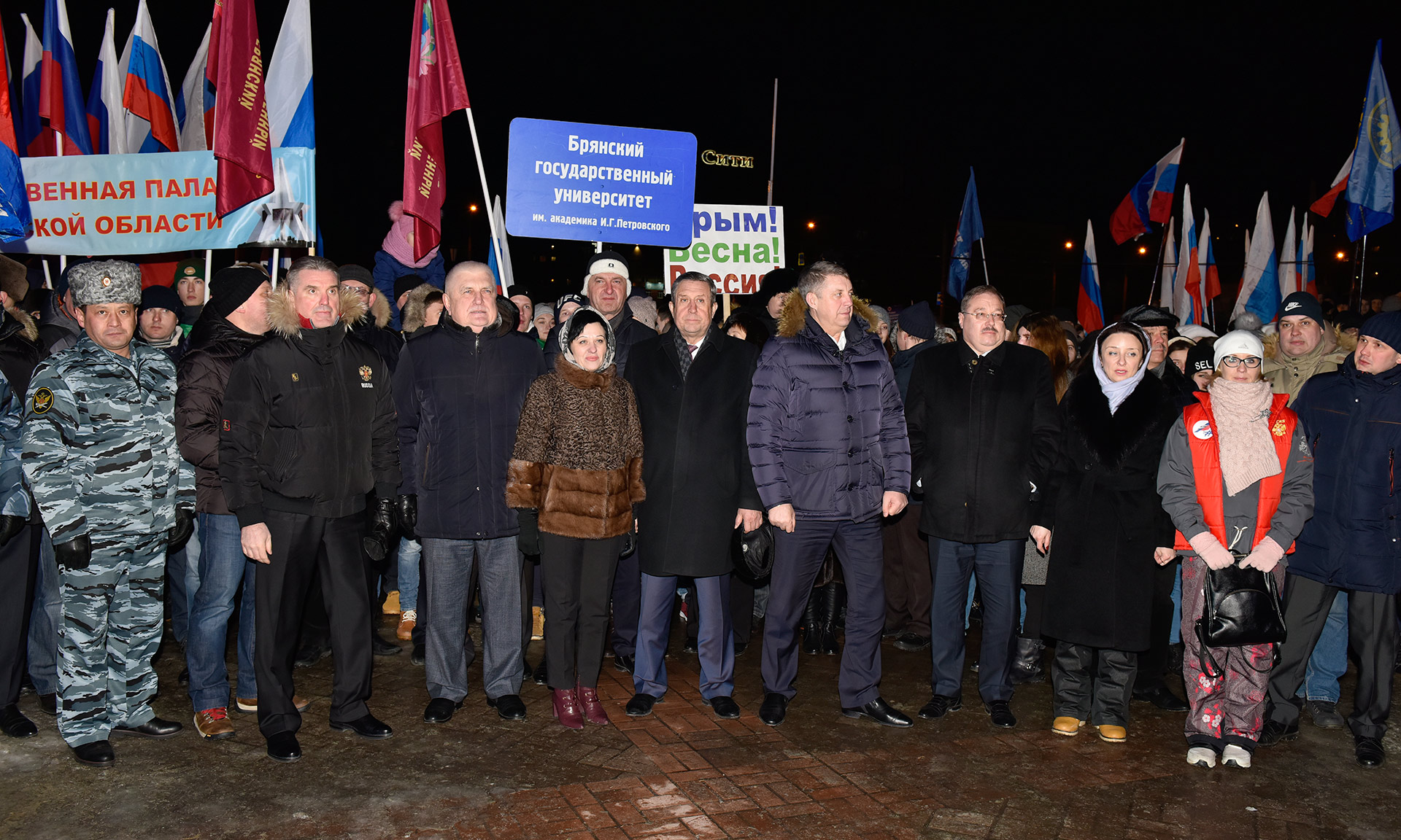 18 марта на площади Воинской Славы Центрального парка культуры и отдыха имени 1000-летия Брянска состоялся митинг-концерт, посвященный годовщине воссоединения Крыма с Россией. Торжественные митинги, посвященные воссоединению Крыма с Россией, также прошли в городах и районах Брянской области.