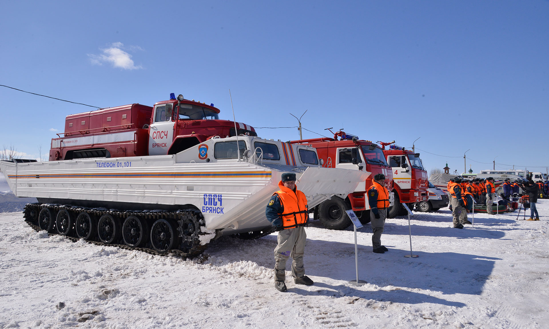 22 марта в Брянске, на территории старого аэропорта, состоялся смотр готовности сил и средств территориальной подсистемы РСЧС Брянской области к реагированию на возможные чрезвычайные ситуации в период половодья 2018 года. В рамках мероприятия прошел смотр готовности городка жизнеобеспечения населения, пострадавшего в чрезвычайных ситуациях природного и техногенного характера, на территории Брянской области.