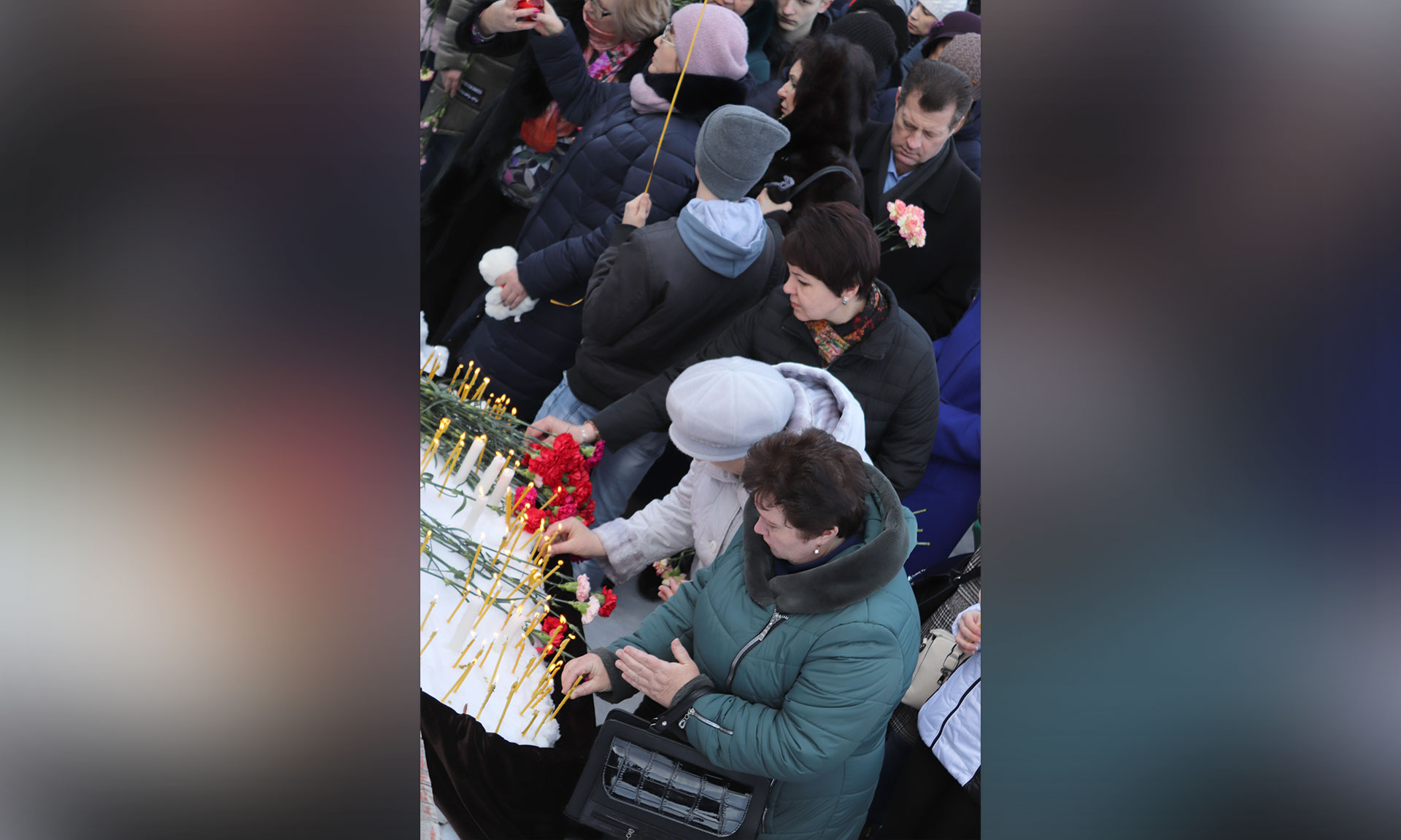 Эта трагедия, никого не могла оставить равнодушным. Люди пришли с цветами, детскими игрушками и поминальными свечами. К участникам акции обратились глава города Клинцы Олег Шкуратов, врио главы Клинцовской городской администрации Александр Морозов и отец Георгий. Они выразили слова соболезнования родным и близким погибшим и выразили надежду на скорейшее выздоровление пострадавших. Память погибших присутствующие почтили минутой молчания и в небо поднялись 64 черных воздушных шара.
