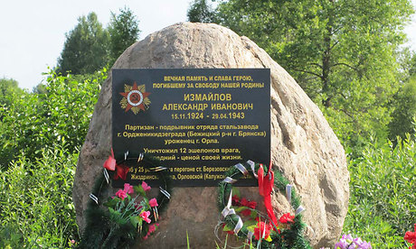 Подрывник партизанского отряда имени А. И. Виноградова Александр Измайлов взорвал одиннадцать вражеских эшелонов. Двенадцатый стал последним. Александр погиб 29 апреля 1943 года у разъезда на перегоне посёлок Берёзовский — ст. Судимир Жиздринского района Орловской (ныне Калужской) области, бросившись с миной под колеса поезда. Ему было всего 19 лет.