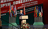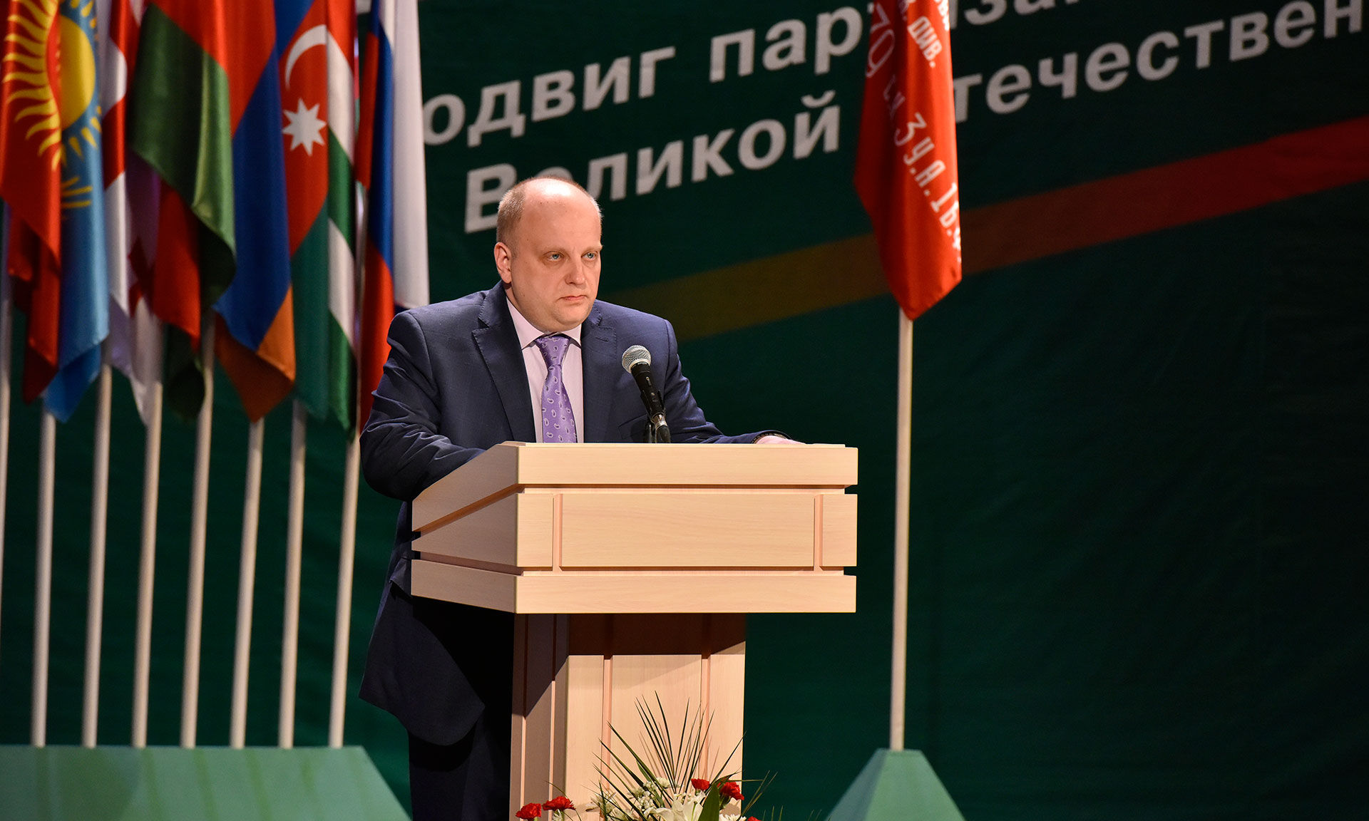 — Дорогие друзья! С первых же месяцев Великой Отечественной войны взоры всех людей мира были с удивлением, восхищением и надеждой обращены на Советский Союз. Советский народ удивил и восхитил мир уже тем, что за несколько послевоенных лет превратился в мощную индустриальную державу с самодостаточной и эффективной экономикой, способной противостоять всей объединенной в руках Гитлера европейской экономике. Советский народ удивил и восхитил мир грандиозными, не имеющими аналогов в мировой истории победоносными сражениями — обороной Москвы, Сталинградской битвой, сражением на Курской дуге, операцией «Багратион», десятком крупномасштабных военных операций, навсегда вошедших в историю мирового военного искусства. Наконец, советский народ удивил и восхитил мир размахом и силой народного сопротивления, которое выразилось в масштабном, невиданном в мировой истории партизанском движении. Ни в одной европейской стране не было ничего подобного.