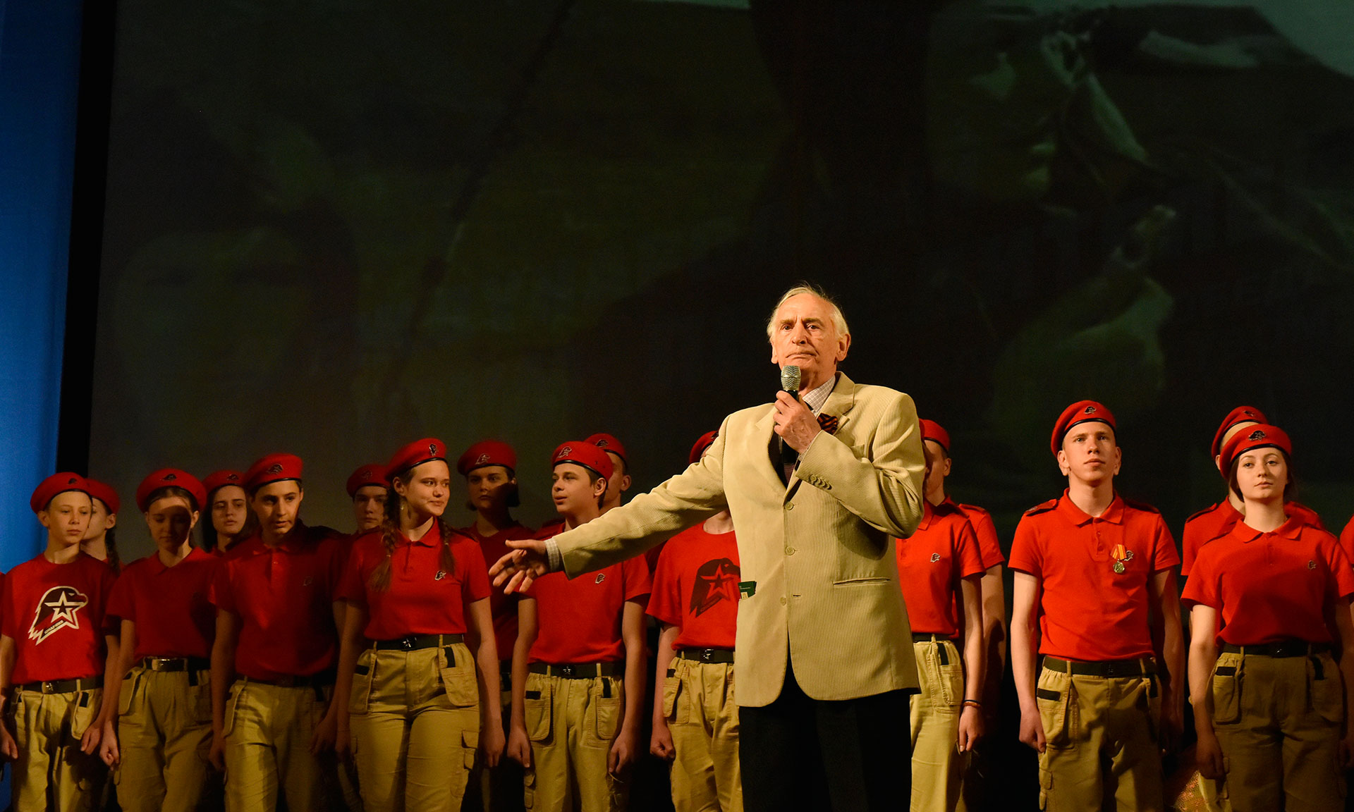 Выступление Василия Семеновича Ланового завершилось песней в его исполнении из легендарного кинофильма «Офицеры», во время которой из зала вышли на сцену и встали рядом с артистом члены патриотического движения «Юнармия», а зрители слушали ее стоя и подпевали.