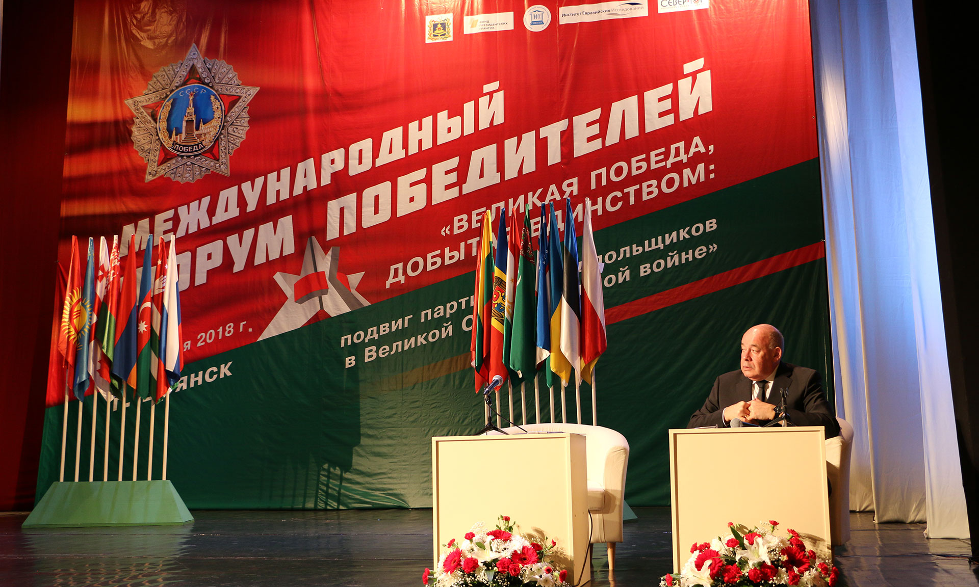 Брянск впервые стал площадкой для уникального мероприятия международного масштаба -Форума «Великая Победа, добытая единством: подвиг партизан и подпольщиков в Великой Отечественной войне». В мероприятии приняли участие представители делегации почетных гостей из государств СНГ, стран Балтии и Грузии, делегации городов и районов Брянской области, ветераны Великой Отечественной войны, юнармейцы, руководители и члены поисковых отрядов и патриотических организаций и объединений региона. Перед открытием Форума начальник Управления Президента Российской Федерации по межрегиональным и культурным связям с зарубежными странами Владимир Чернов озвучил Приветствие Президента Российской Федерации Владимира Путина к участникам Форума.