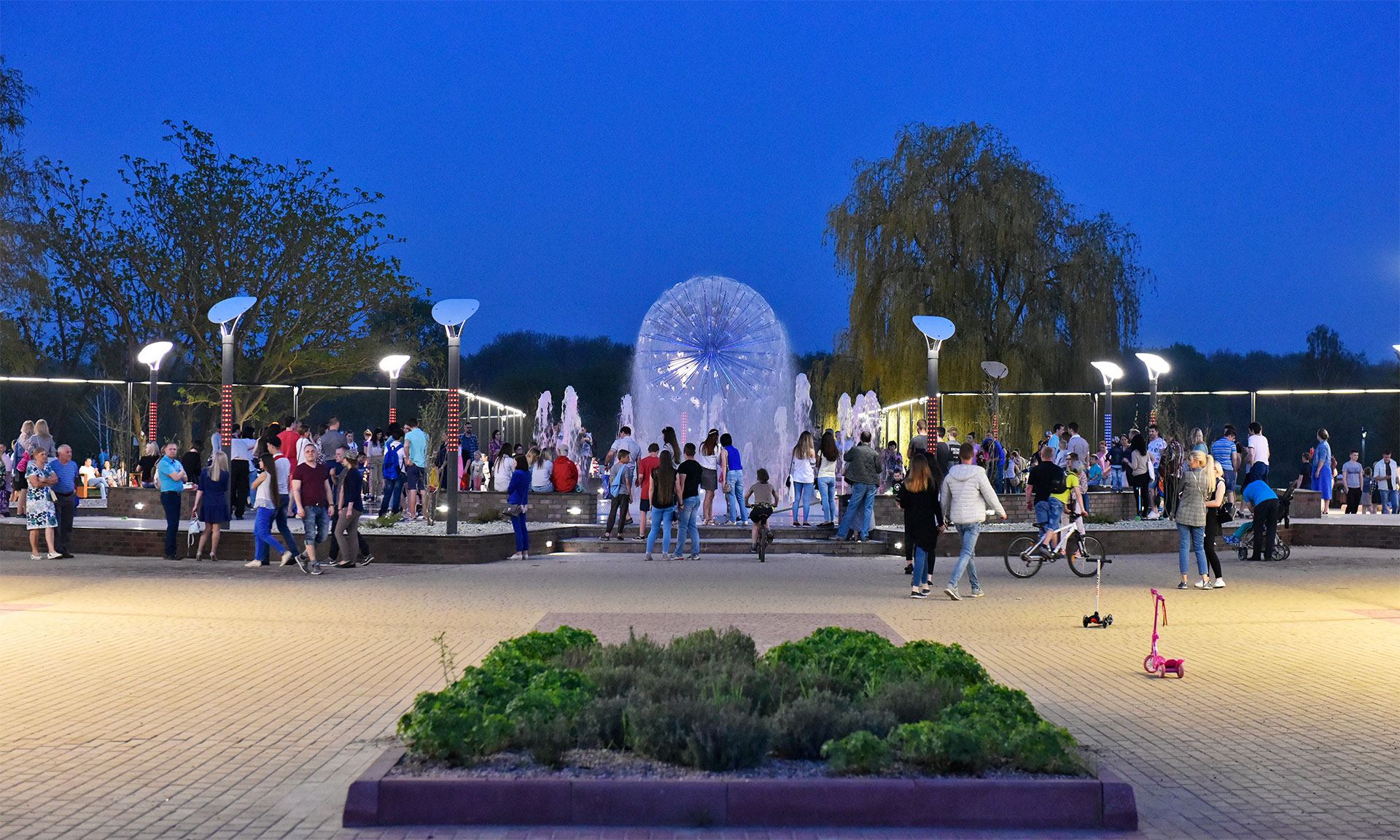 Реконструкция Славянской площади ведется городскими властями при участии инвестора. Установлены лавочки, урны, фонари, обустроено освещение вокруг фонтана, работы по реконструкции самого фонтана завершены. Около столь долгожданного объекта уже собираются сотни горожан, и не только в вечернее, но и дневное время, чтобы насладиться приятной прохладой в эти жаркие весенние дни.