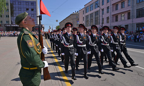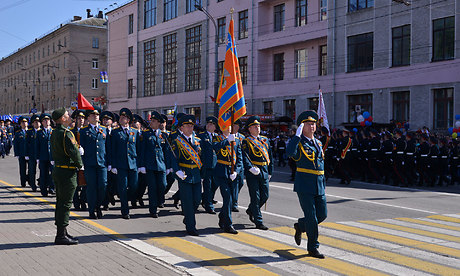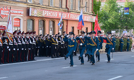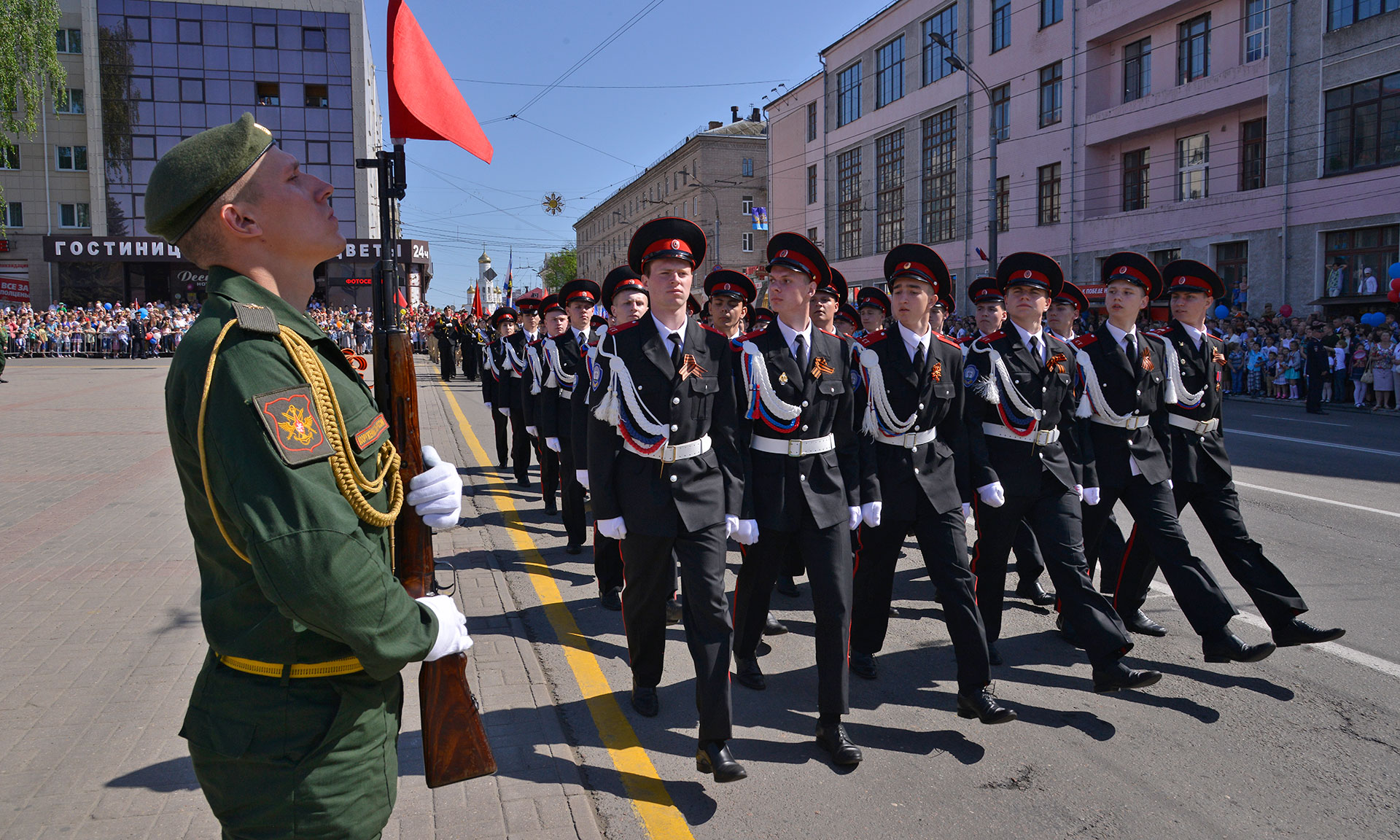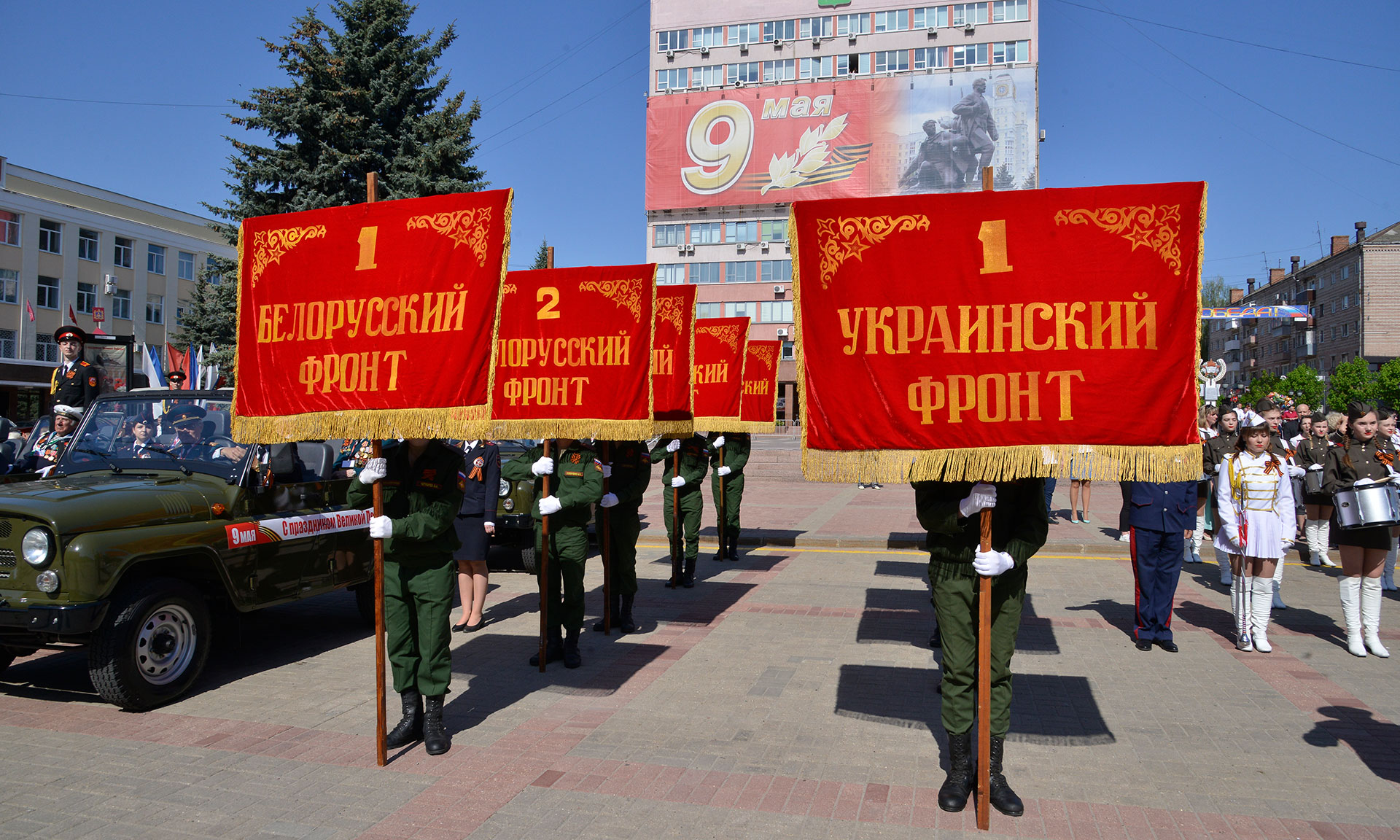 Торжественное шествие парадных расчетов Брянского гарнизона и Парада поколений, посвященное 73-й годовщине Победы в Великой Отечественной войне, началось в Брянске.