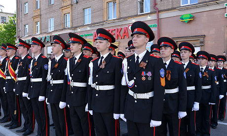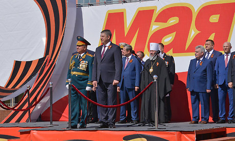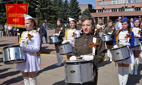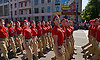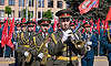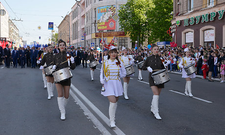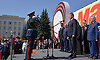 Непосредственно перед началом шествия колонны все, собравшиеся на площади Ленина, исполнили Гимн Российской Федерации.