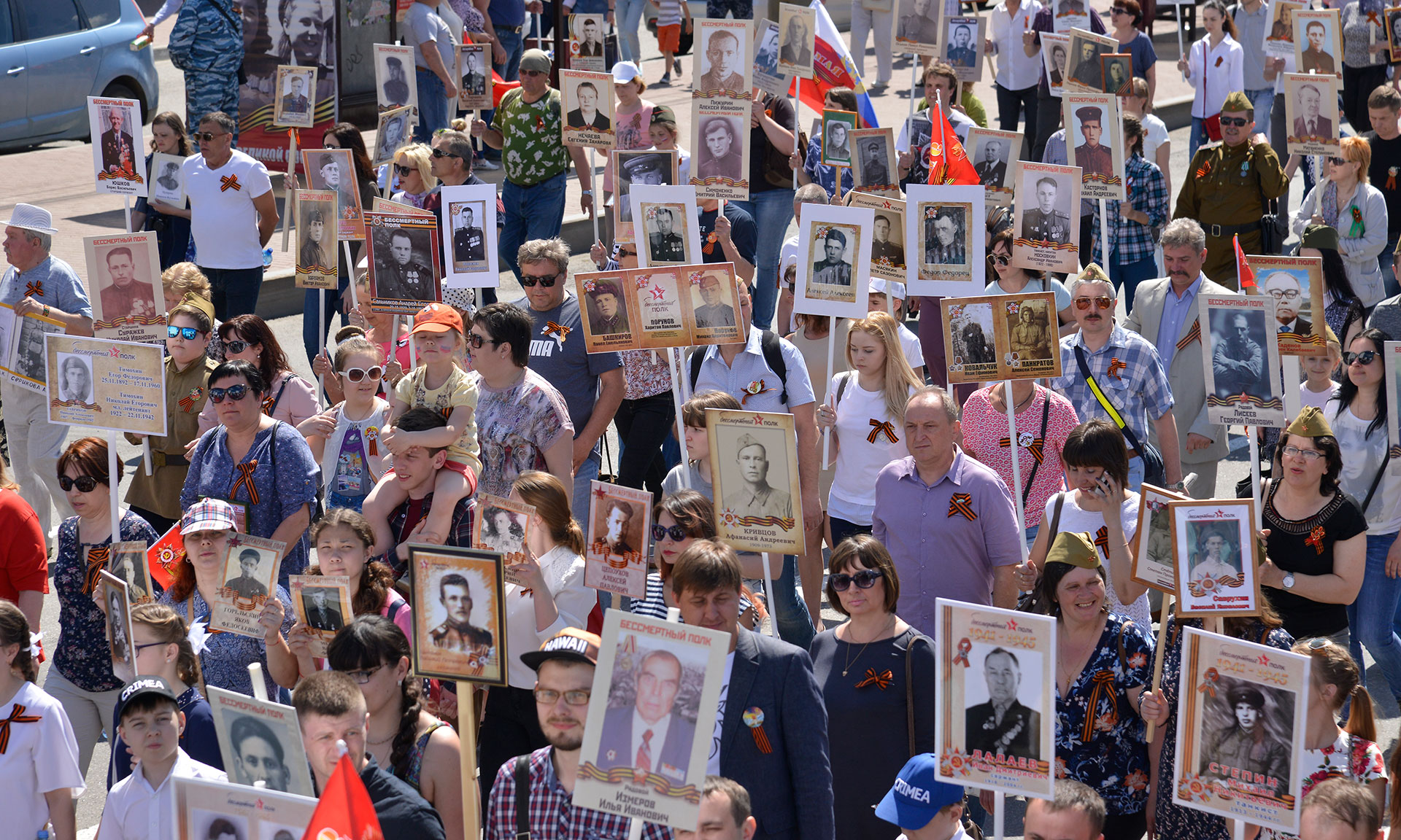 Число участников «Бессмертного полка» с каждым годом все увеличивается, и благодарные потомки свято чтят память героев Великой Отечественной войны.